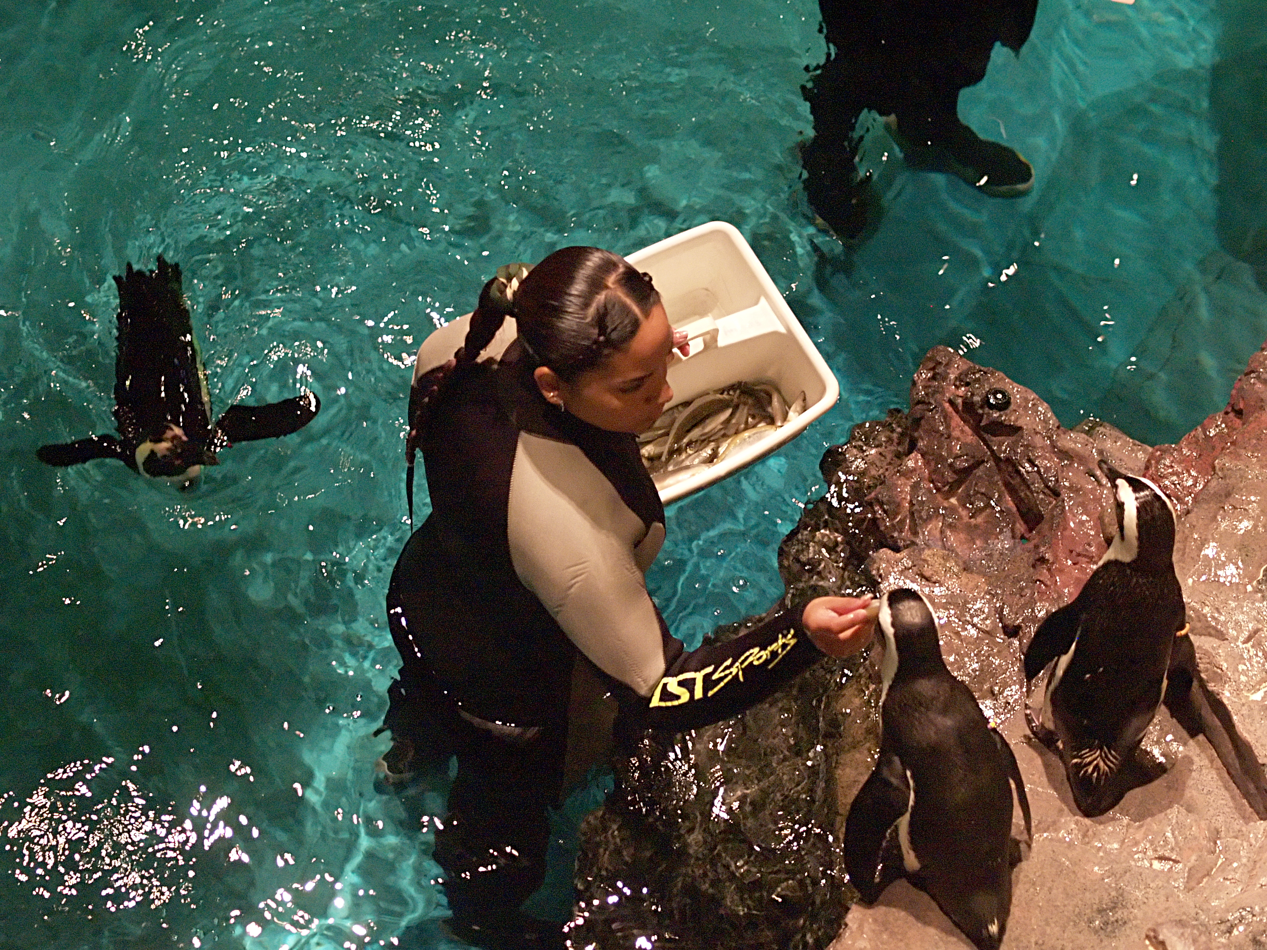 Picture #14: Penguin feeding Small: 640x503, 106,344 bytes (104K), (html file) Large: 2560x1920, 6,156,739 bytes (5.9M), (html file) Copyright, Michael Meissner 2006, All rights reserved Olympus E-1 camera with Olympus 50mm f/2.0 lens f/2.2, ISO 1600, 1/160 sec, 50.0mm, auto mode, SHQ, matrix metering, +2 sharpening 35mm equivalent focal length 100.0mm Extra equipment used: noiseninja Taken by Michael Meissner on July 23, 2006 14:40:16 Last modified on July 23, 2006 at 19:08 |