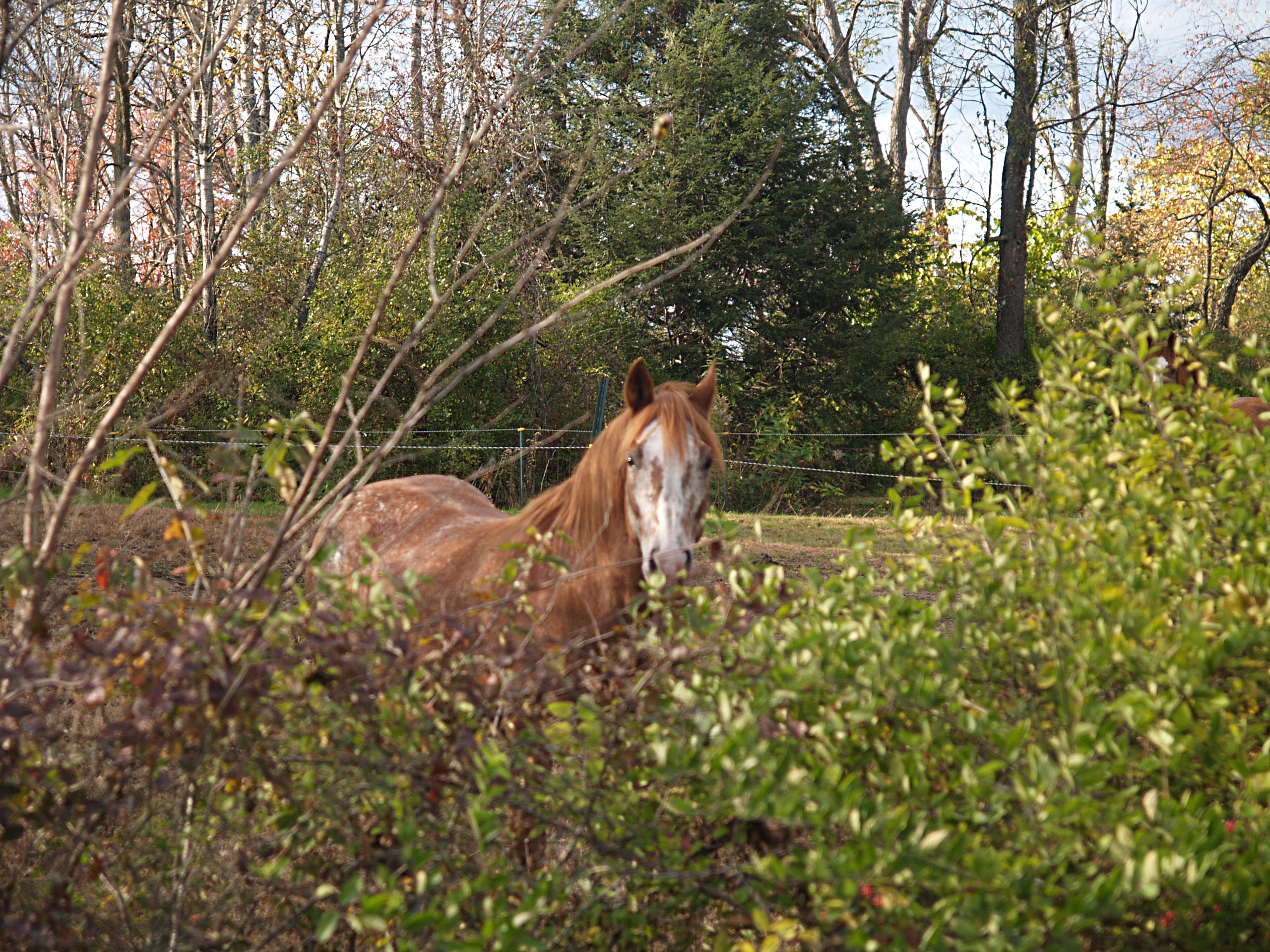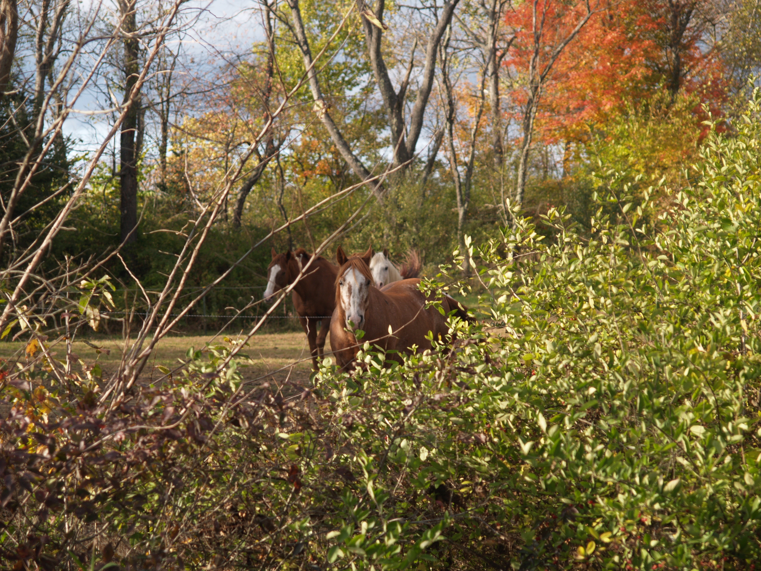Picture #62: Horses Small: 640x503, 119,608 bytes (117K), (html file) Large: 2560x1920, 3,431,063 bytes (3.3M), (html file) Copyright, Michael Meissner 2006, All rights reserved Olympus E-1 camera with Olympus 14-54mm f/2.8-3.5 lens f/3.5, ISO 100, 1/100 sec, 54.0mm, auto mode, SHQ, matrix metering, +2 sharpening 35mm equivalent focal length 108.0mm Extra equipment used: polarizer Taken by Michael Meissner on October 15, 2006 16:06:22 Last modified on October 15, 2006 at 23:39 These horses were in the padock when I was taking the "Barn in fall" picture, and were interested in me as I was taking the picture. |