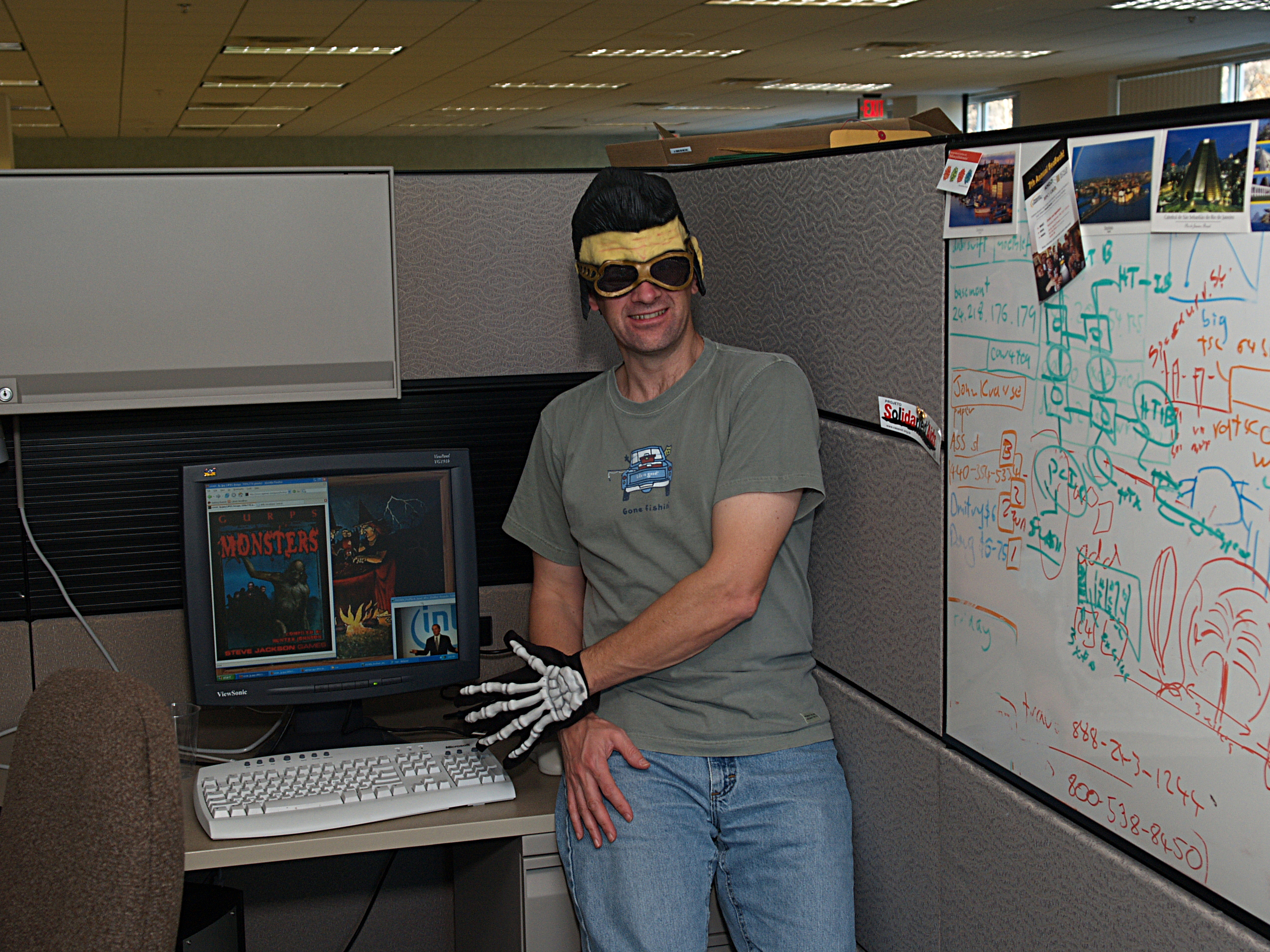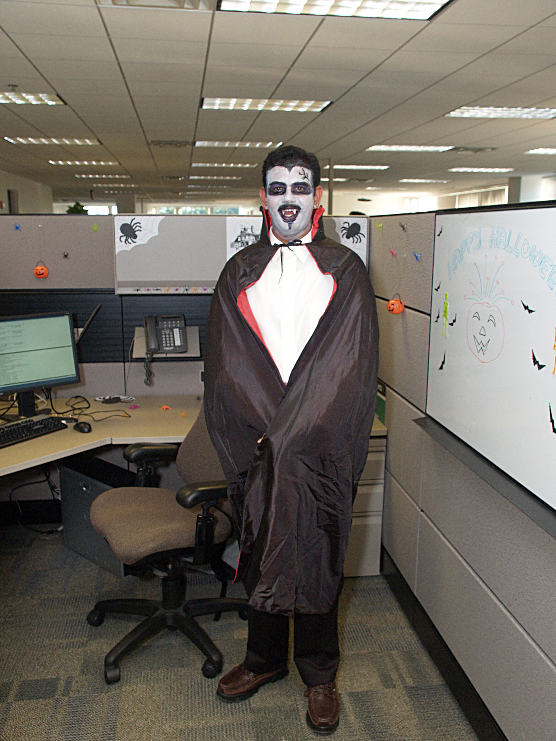 Picture #49: Alien and Vampire Small: 492x702, 84,949 bytes (83K), (html file) Large: 1966x2624, 5,201,566 bytes (5.0M), (html file) Copyright, Michael Meissner 2006, All rights reserved Olympus E-1 camera with Olympus 14-54mm f/2.8-3.5 lens f/4.0, ISO 200, FL-50 flash, 1/60 sec, 14.0mm, manual mode, SHQ, matrix metering, +2 sharpening 35mm equivalent focal length 28.0mm Extra equipment used: FL-50 flash, Demb Flash Diffuser Pro Taken by Michael Meissner on October 27, 2006 16:14:31 Last modified on October 27, 2006 at 20:50 |
