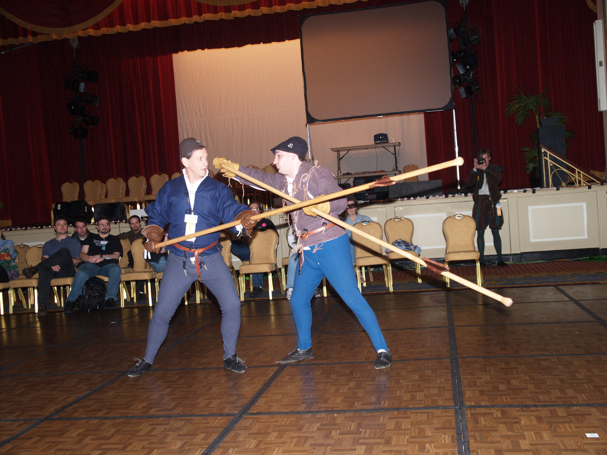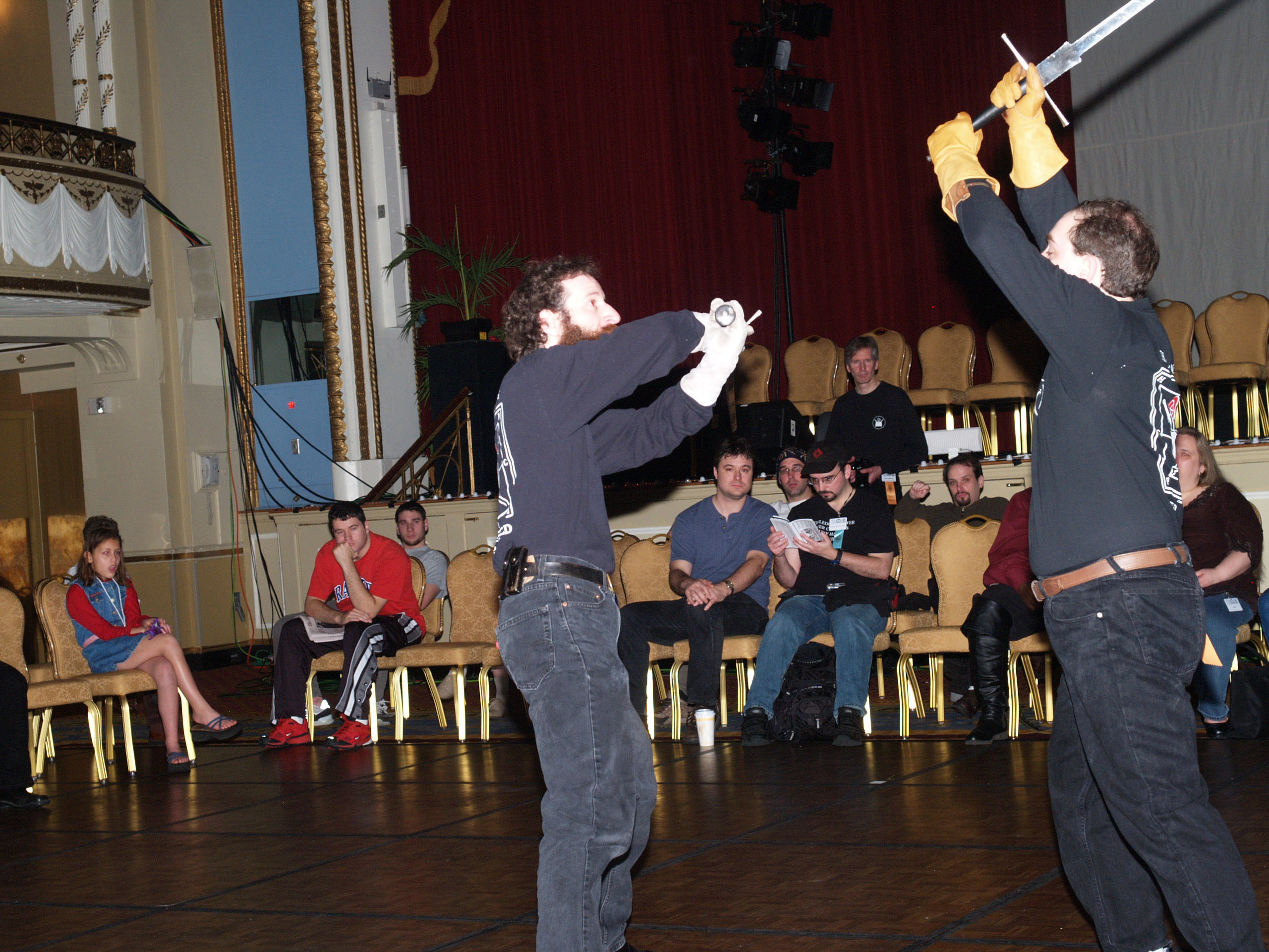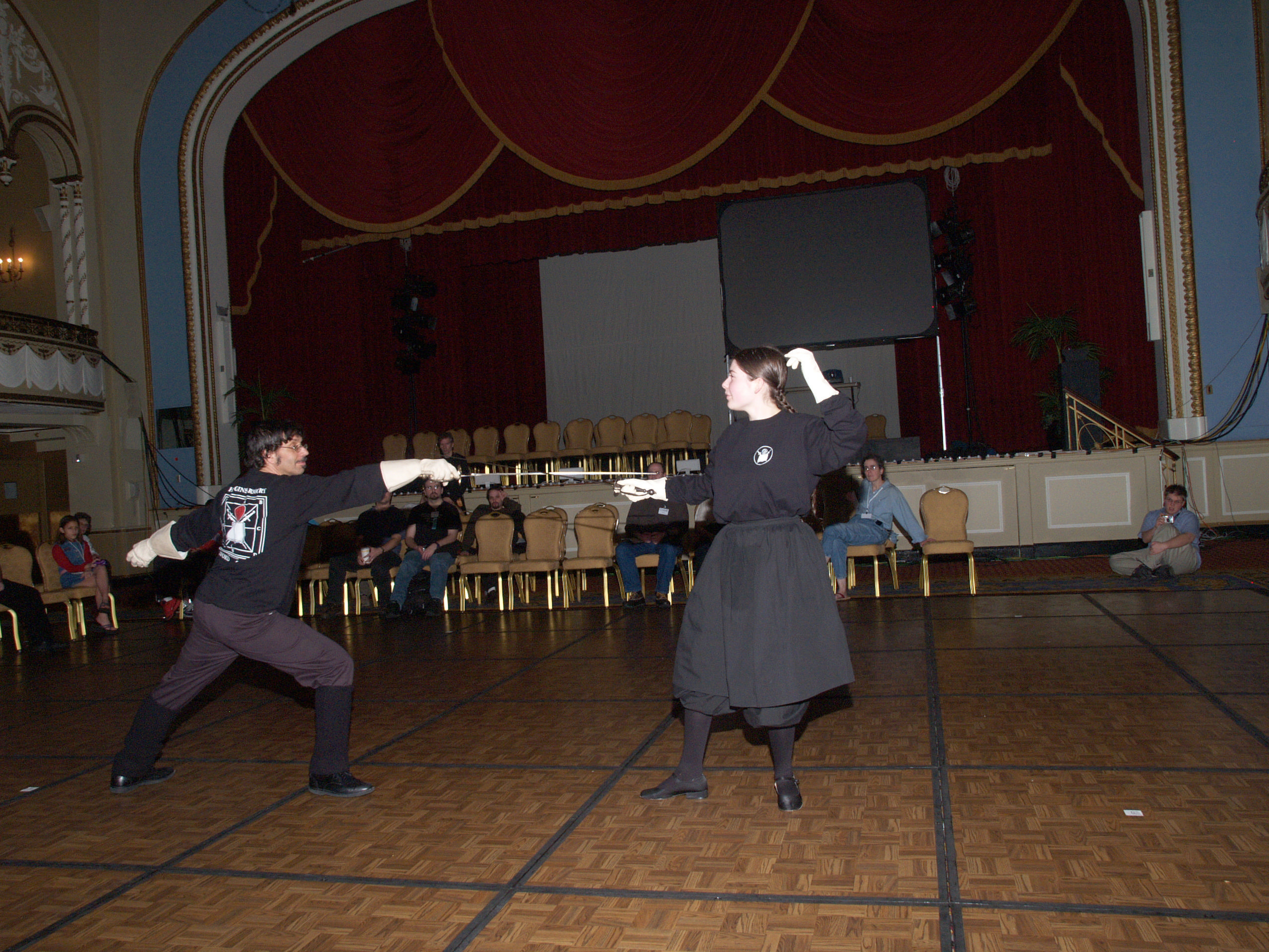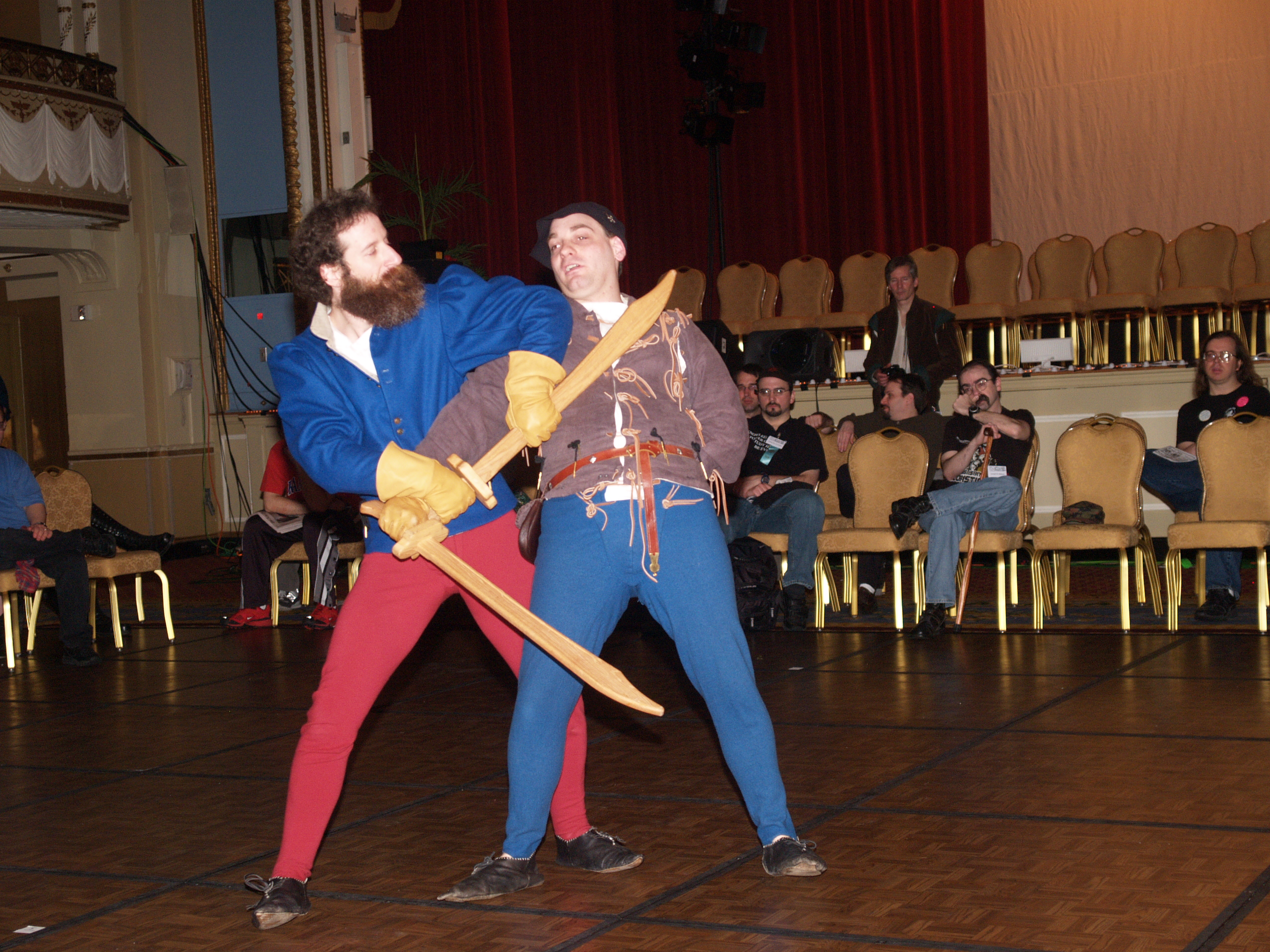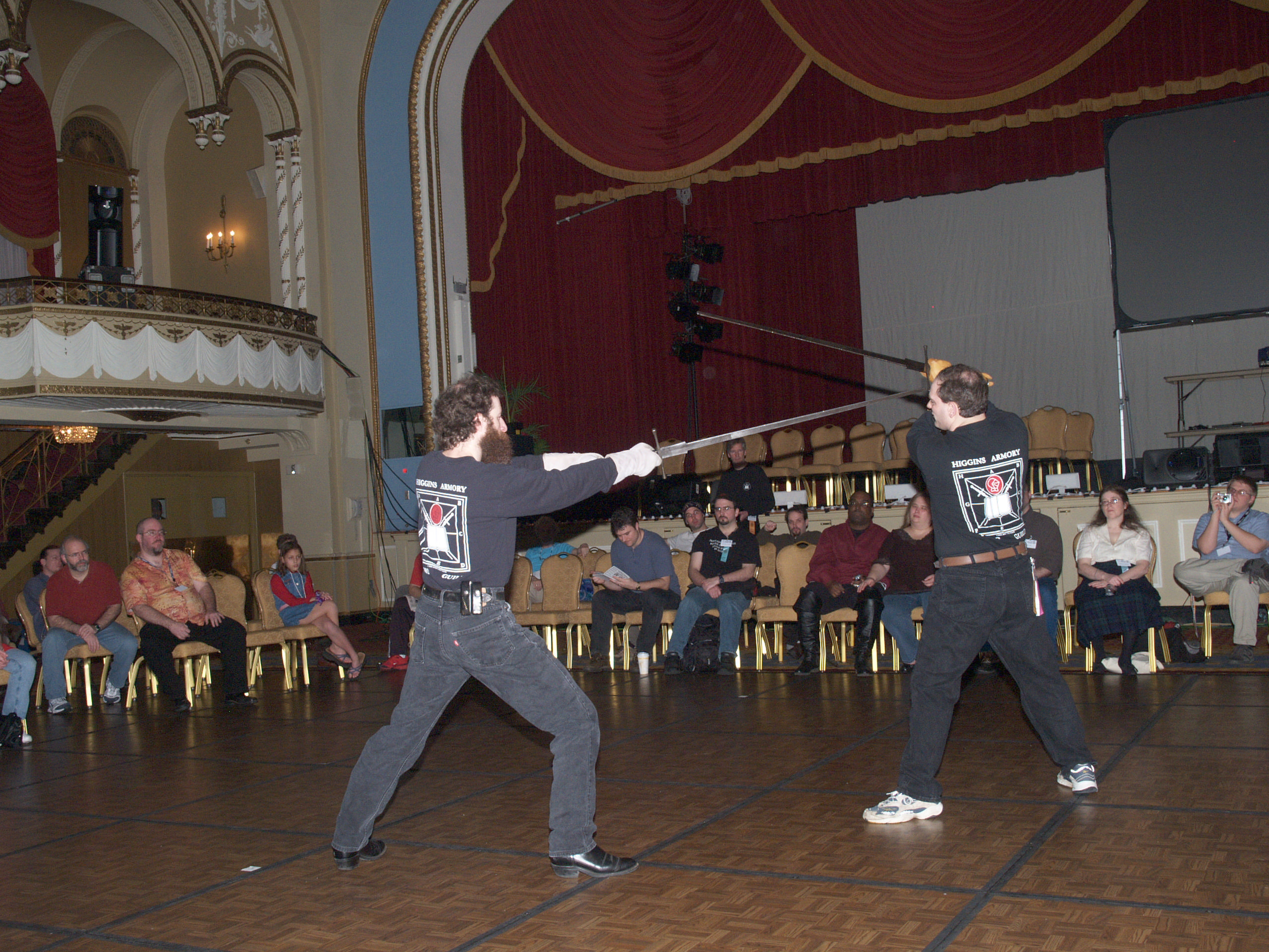 Picture #31: Swordplay through the ages demonstration #4 Small: 640x526, 64,627 bytes (64K), (html file) Large: 2560x1920, 3,173,618 bytes (3.0M), (html file) Copyright, Michael Meissner 2006, All rights reserved Olympus E-1 camera with Olympus 14-54mm f/2.8-3.5 lens f/5.6, ISO 400, FL-50 flash, 1/160 sec, 14.0mm, manual mode, SHQ, matrix metering, +2 sharpening, manual focus 35mm equivalent focal length 28.0mm Extra equipment used: FL-50 flash Taken by Michael Meissner on January 14, 2006 11:17:06 Last modified on January 15, 2006 at 11:52 |