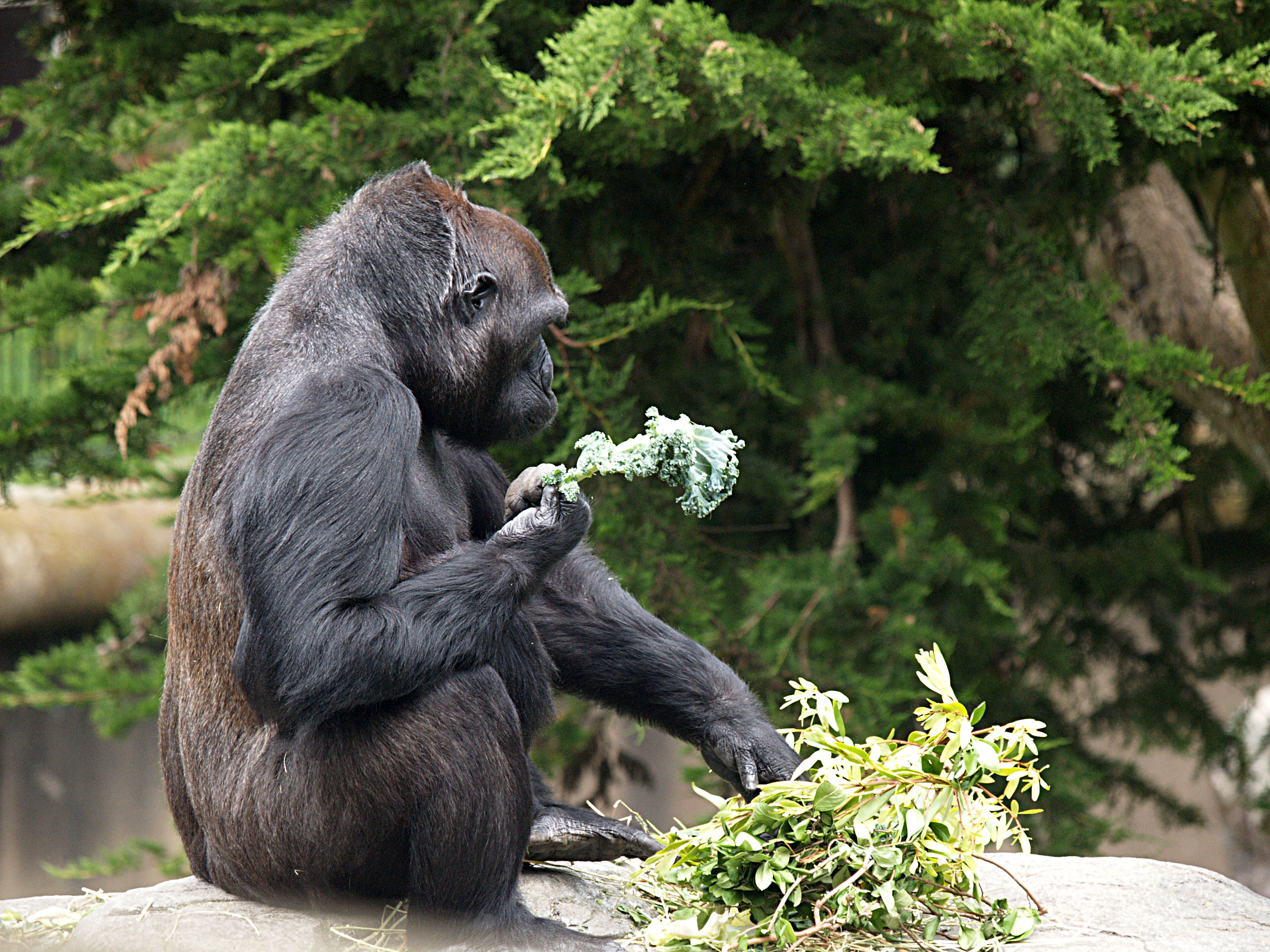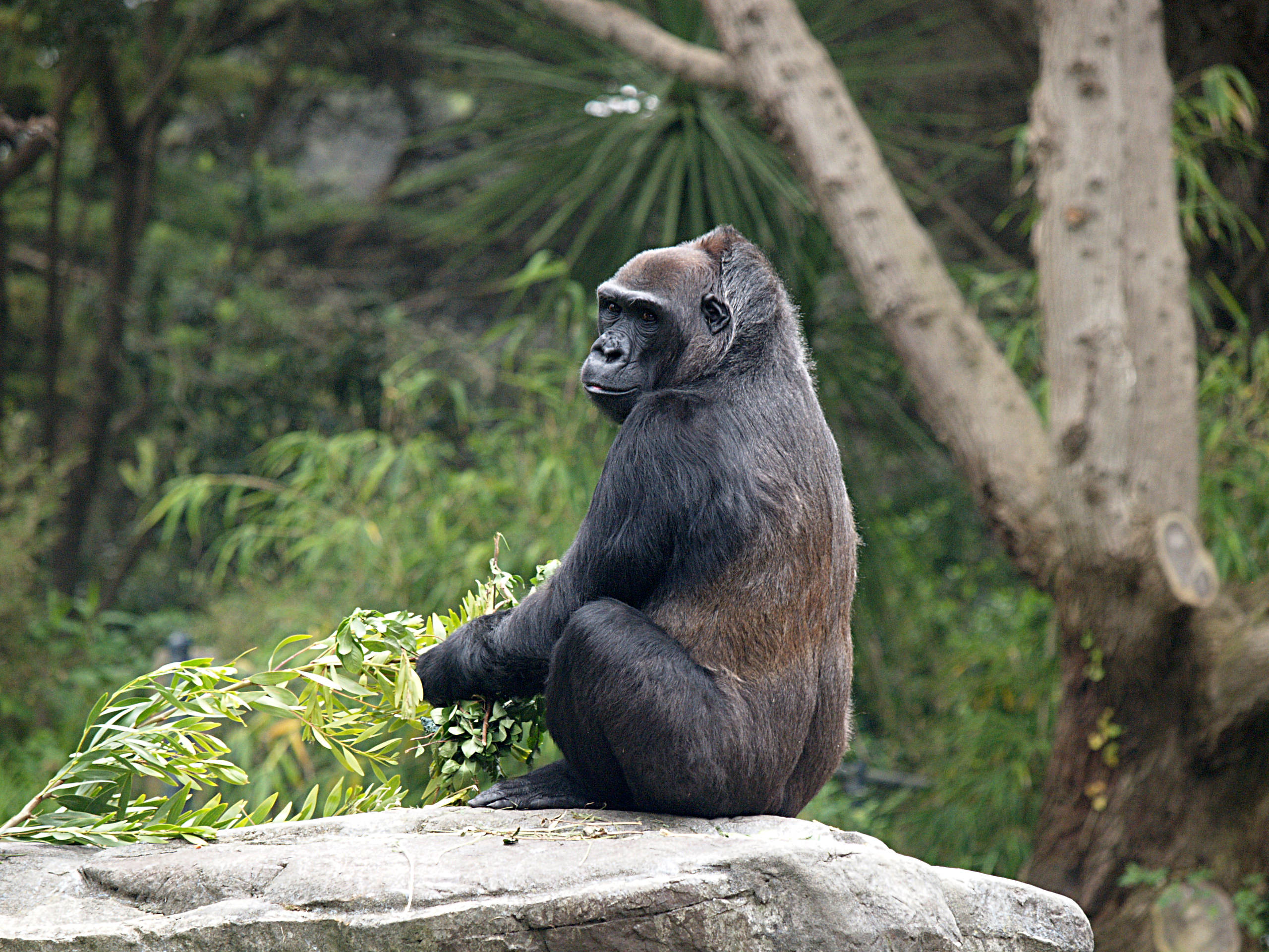 Picture #8: Silverback male Small: 640x503, 108,052 bytes (106K), (html file) Large: 2560x1920, 6,250,516 bytes (6.0M), (html file) Copyright, Michael Meissner 2006, All rights reserved Olympus E-1 camera with Olympus 50-200mm f/2.8-3.5 lens f/5.6, ISO 400, 1/640 sec, 123.0mm, auto mode, SHQ, matrix metering, +2 sharpening 35mm equivalent focal length 246.0mm Taken by Michael Meissner on April 21, 2006 12:43:17 Last modified on April 21, 2006 at 20:47 |