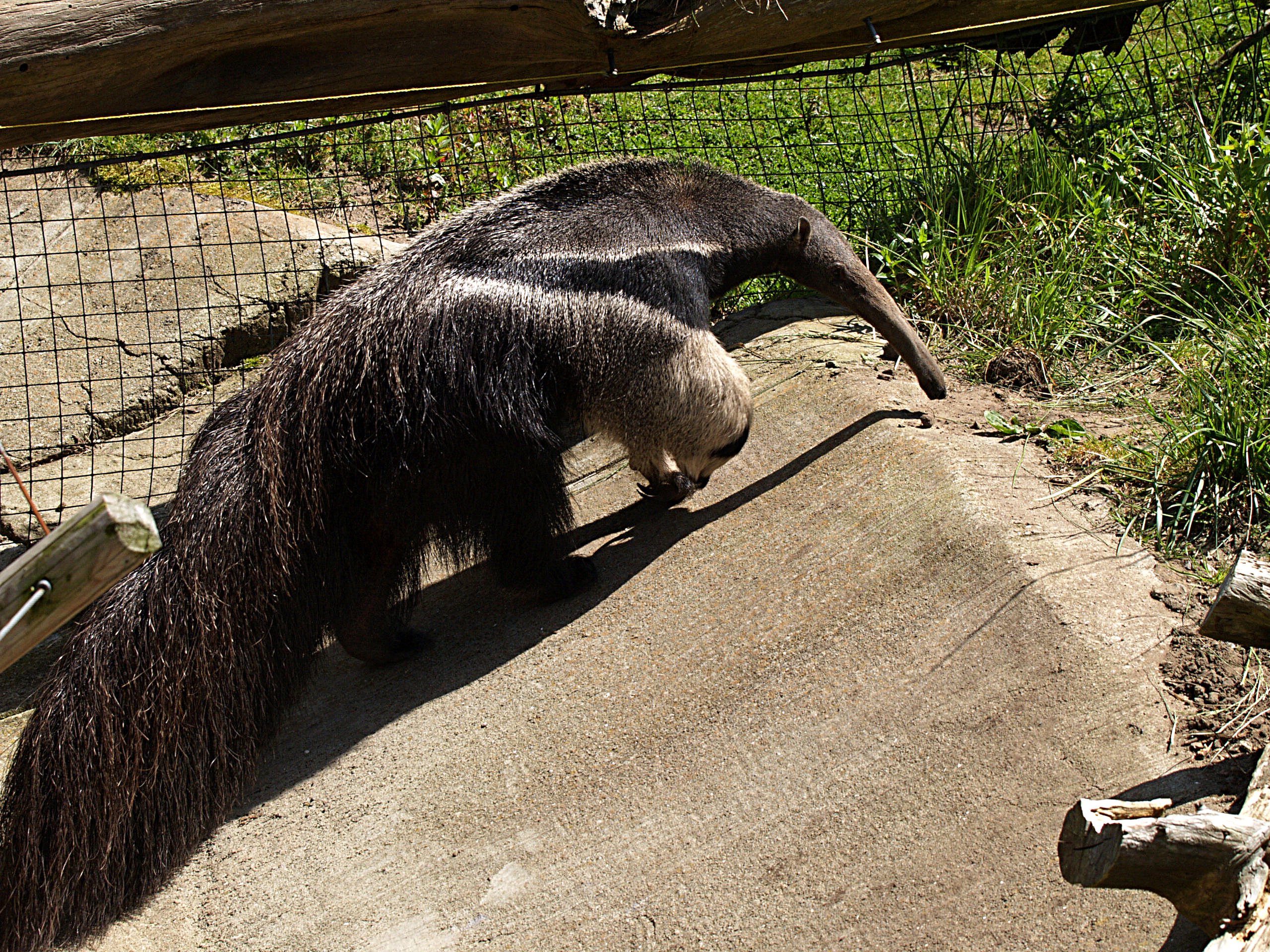 Picture #2: Giant anteater #2 Small: 640x503, 145,476 bytes (143K), (html file) Large: 2560x1920, 5,468,618 bytes (5.2M), (html file) Copyright, Michael Meissner 2006, All rights reserved Olympus E-1 camera with Olympus 50-200mm f/2.8-3.5 lens f/5.6, ISO 200, 1/500 sec, 50.0mm, auto mode, SHQ, matrix metering, +2 sharpening 35mm equivalent focal length 100.0mm Taken by Michael Meissner on April 21, 2006 14:13:04 Last modified on April 21, 2006 at 20:49 |