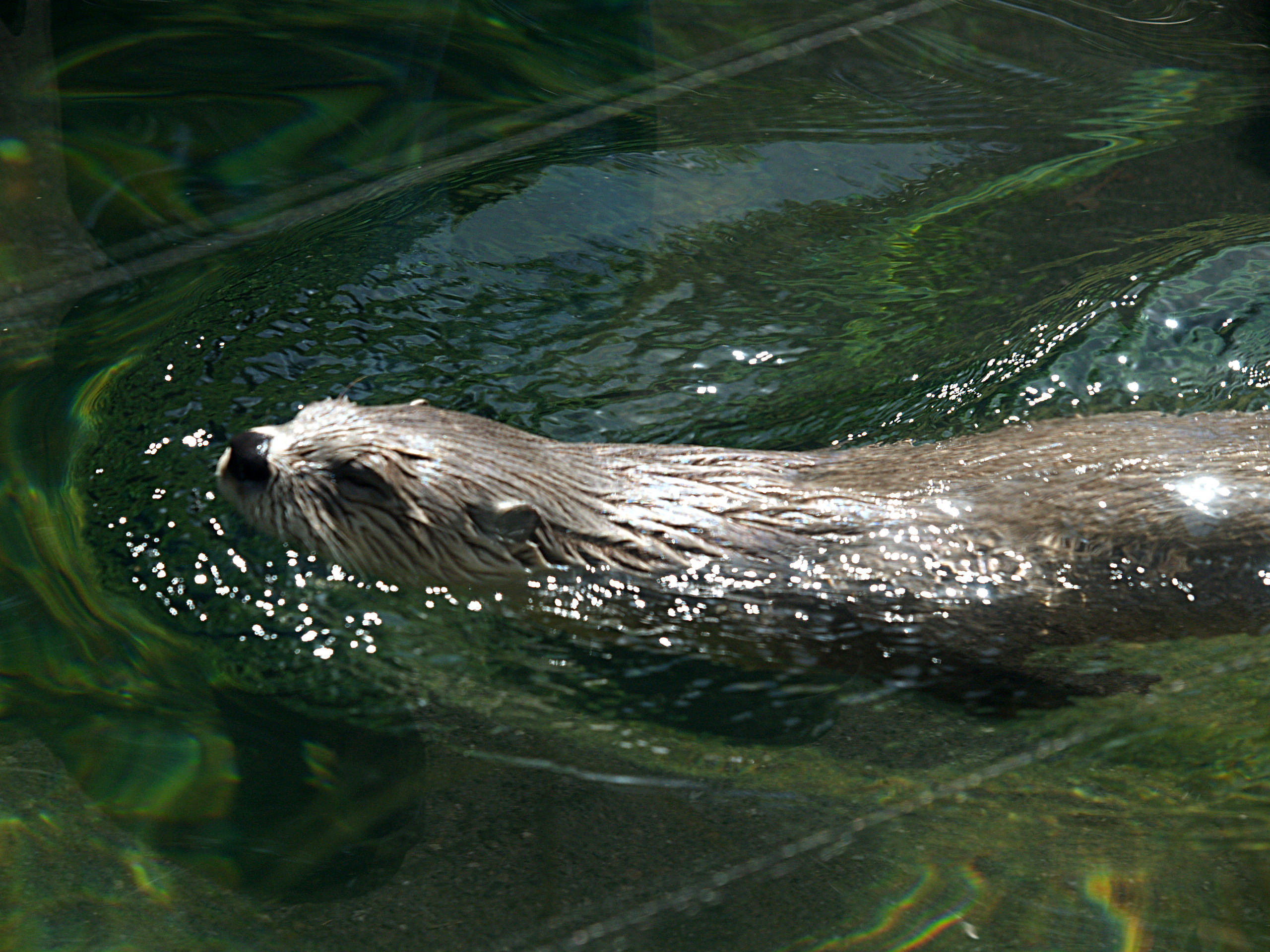 Picture #7: North american river otter #7 Small: 640x503, 59,839 bytes (59K), (html file) Large: 2560x1920, 2,815,041 bytes (2.7M), (html file) Copyright, Michael Meissner 2006, All rights reserved Olympus E-1 camera with Olympus 50-200mm f/2.8-3.5 lens f/5.0, ISO 200, 1/500 sec, 117.0mm, auto mode, SHQ, matrix metering, +2 sharpening 35mm equivalent focal length 234.0mm Extra equipment used: Shot through glass Taken by Michael Meissner on April 21, 2006 14:45:59 Last modified on April 21, 2006 at 20:50 |