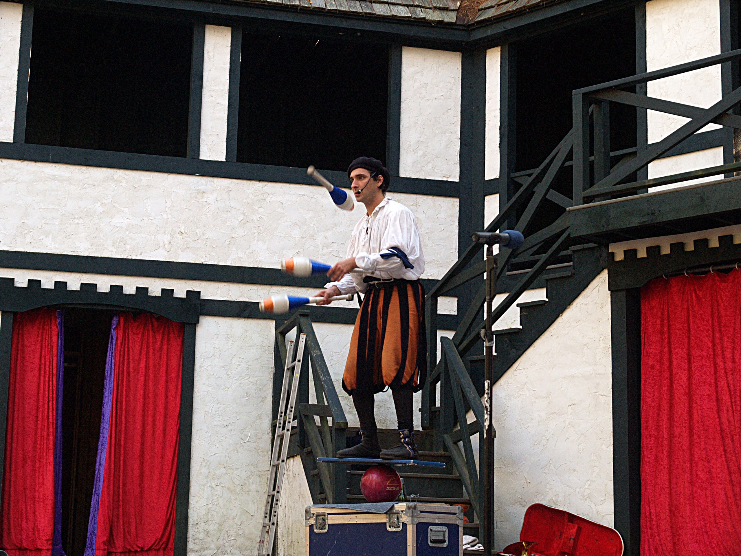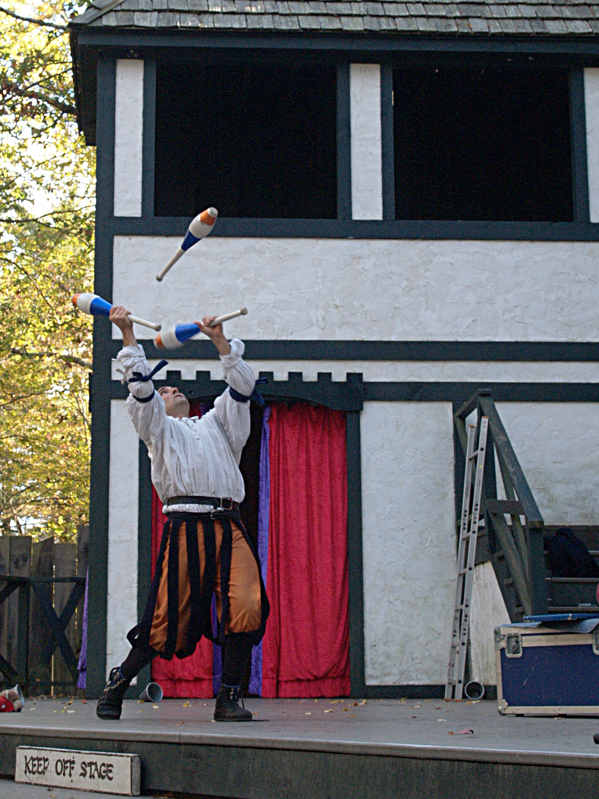 Picture #9: Overhead juggling Thumb: 300x400, 42,879 bytes (42K) Small: 600x823, 115,105 bytes (113K), (html file) Large: 1200x1600, 2,610,644 bytes (2.5M), (html file) Copyright, Michael Meissner 2006, All rights reserved Olympus E-1 camera with Olympus 14-54mm f/2.8-3.5 lens f/5.6, ISO 400, 1/160 sec, 23.0mm, auto mode, SHQ, matrix metering, +2 sharpening 35mm equivalent focal length 46.0mm Taken by Michael Meissner on October 14, 2006 15:13:12 Last modified on October 14, 2006 at 21:55 |