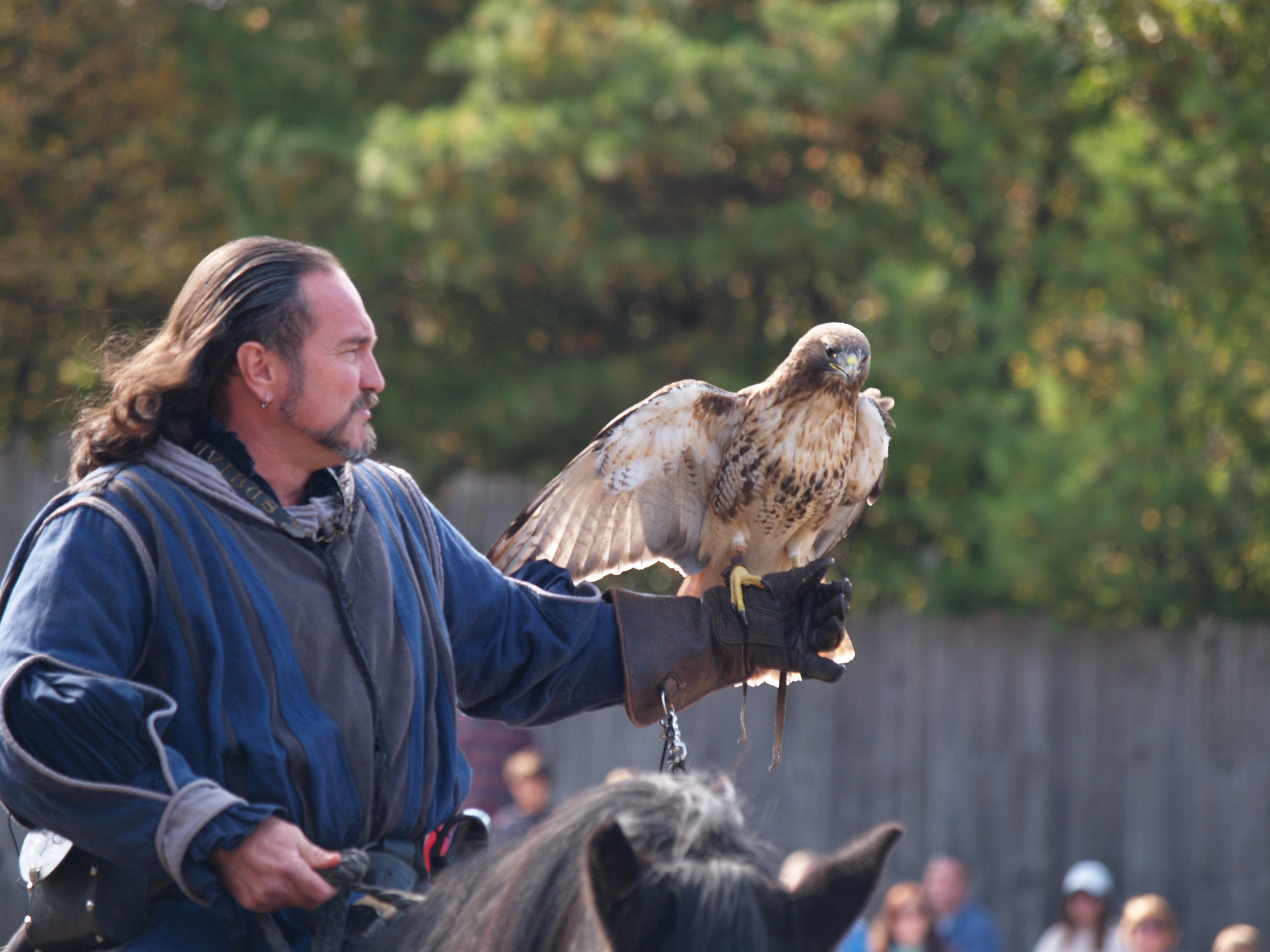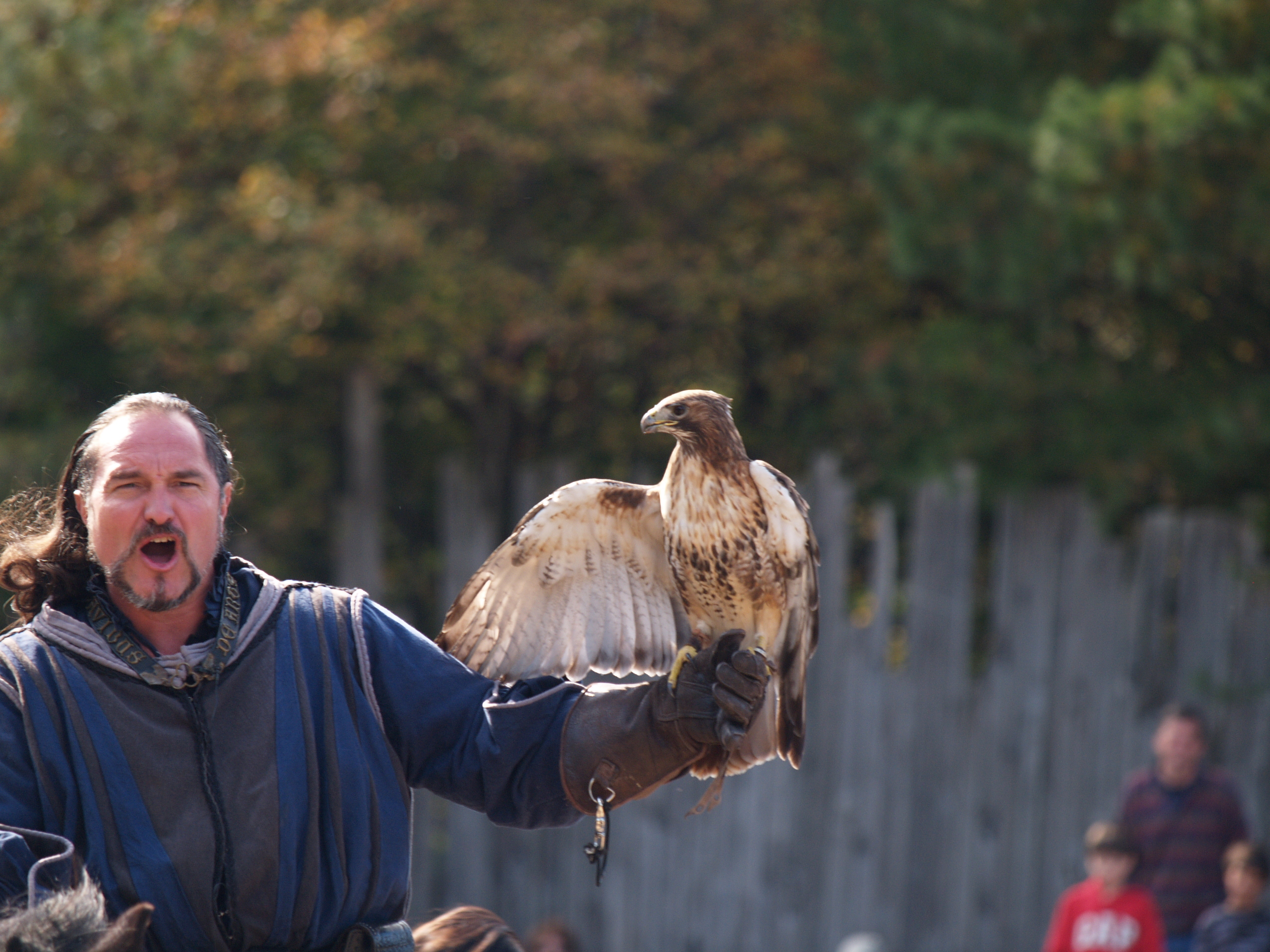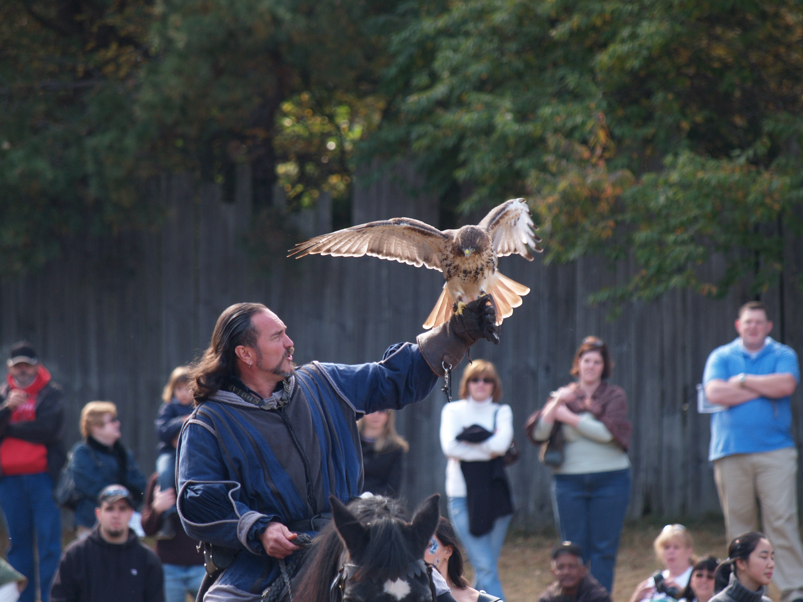 Picture #9: Knighthawk falcon show #9 Thumb: 320x240, 29,869 bytes (30K) Small: 640x503, 68,875 bytes (68K), (html file) Large: 2560x1920, 3,446,235 bytes (3.3M), (html file) Copyright, Michael Meissner 2006, All rights reserved Olympus E-1 camera with Olympus 50-200mm f/2.8-3.5 lens f/5.6, ISO 400, 1/800 sec, 130.0mm, auto mode, SHQ, matrix metering, +2 sharpening 35mm equivalent focal length 260.0mm Taken by Michael Meissner on October 14, 2006 13:43:06 Last modified on October 14, 2006 at 21:53 |
