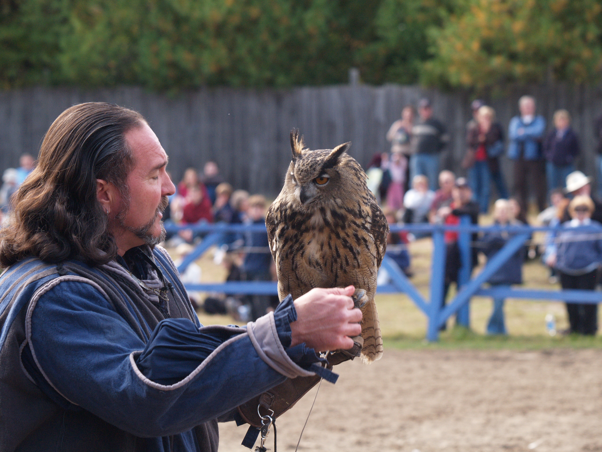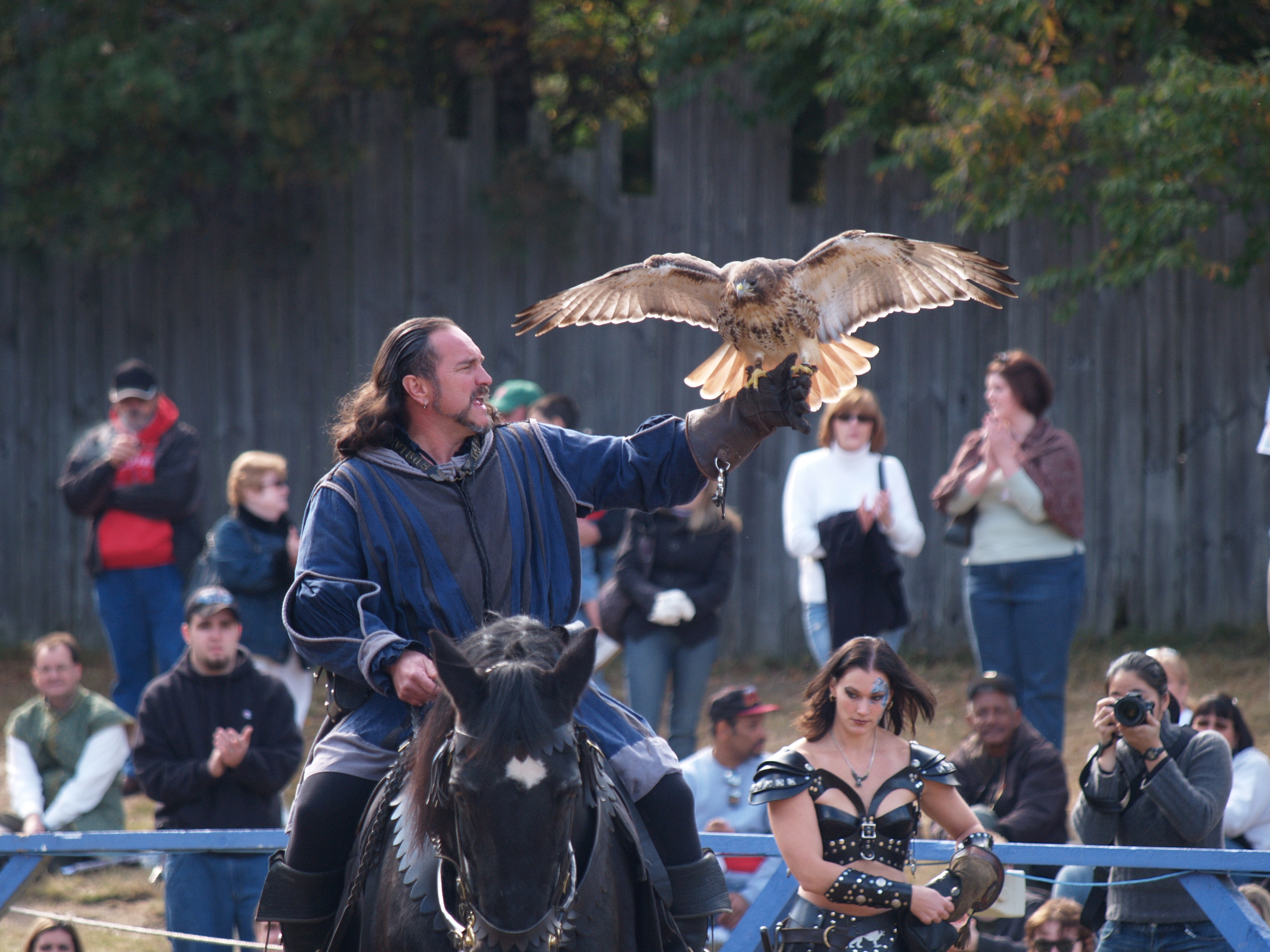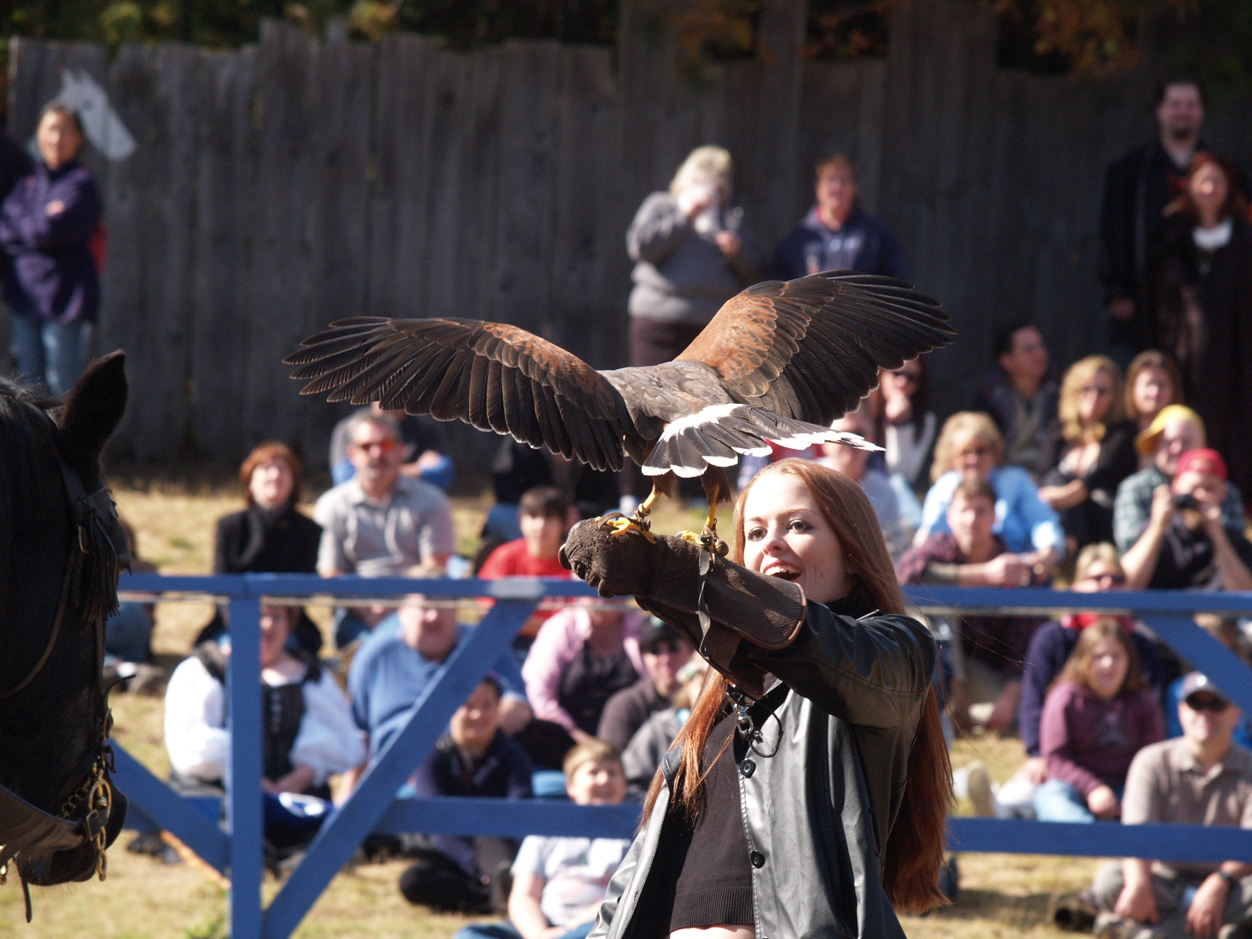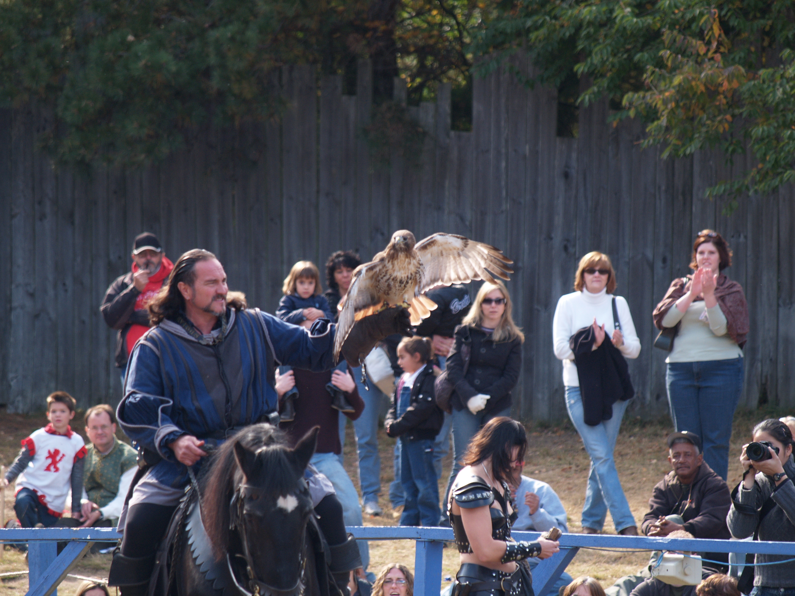 Picture #9: Knighthawk falcon show #9 Thumb: 320x240, 29,869 bytes (30K) Small: 640x503, 68,875 bytes (68K), (html file) Large: 2560x1920, 3,446,235 bytes (3.3M), (html file) Copyright, Michael Meissner 2006, All rights reserved Olympus E-1 camera with Olympus 50-200mm f/2.8-3.5 lens f/5.6, ISO 400, 1/800 sec, 130.0mm, auto mode, SHQ, matrix metering, +2 sharpening 35mm equivalent focal length 260.0mm Taken by Michael Meissner on October 14, 2006 13:43:06 Last modified on October 14, 2006 at 21:53 |