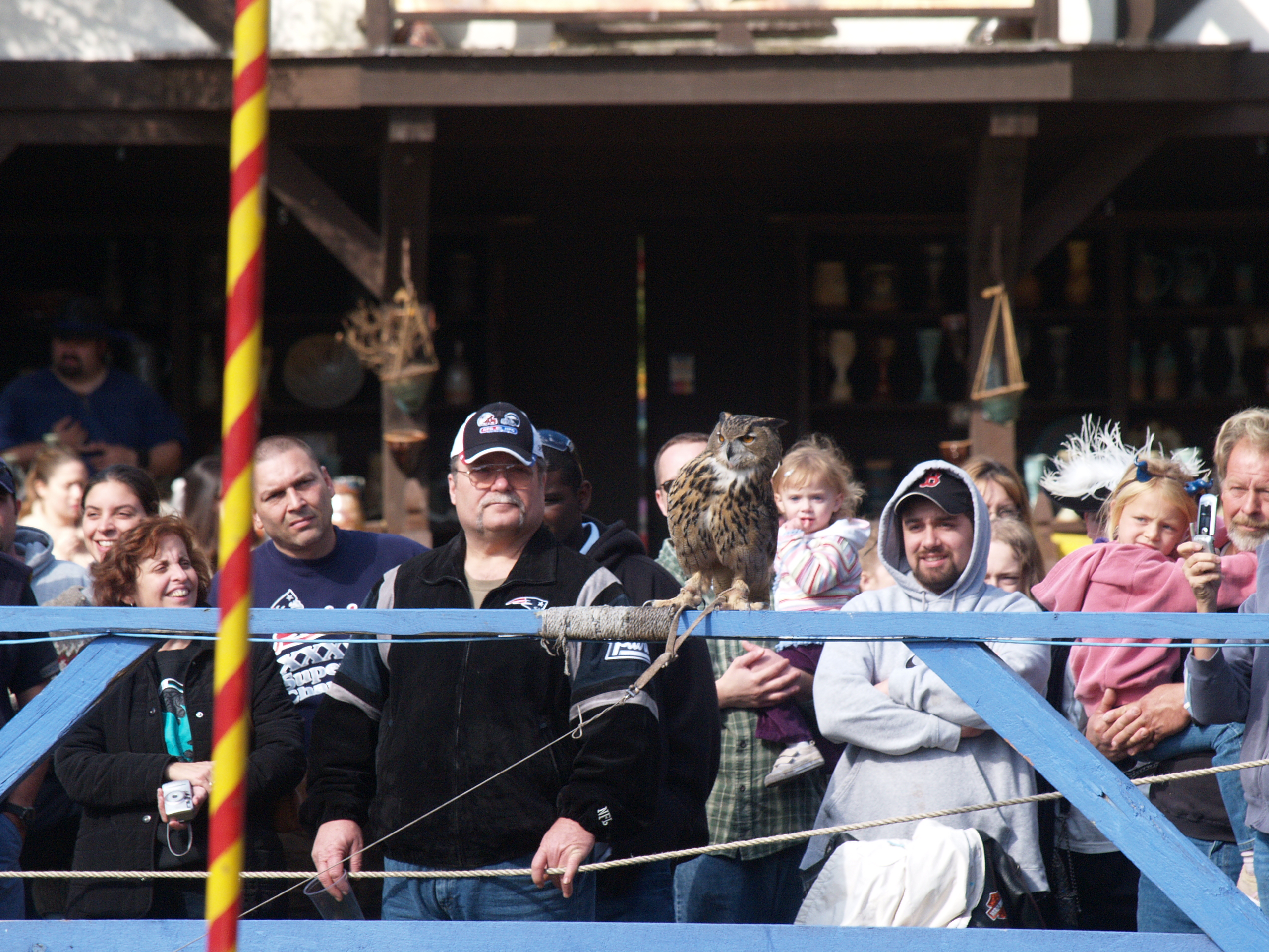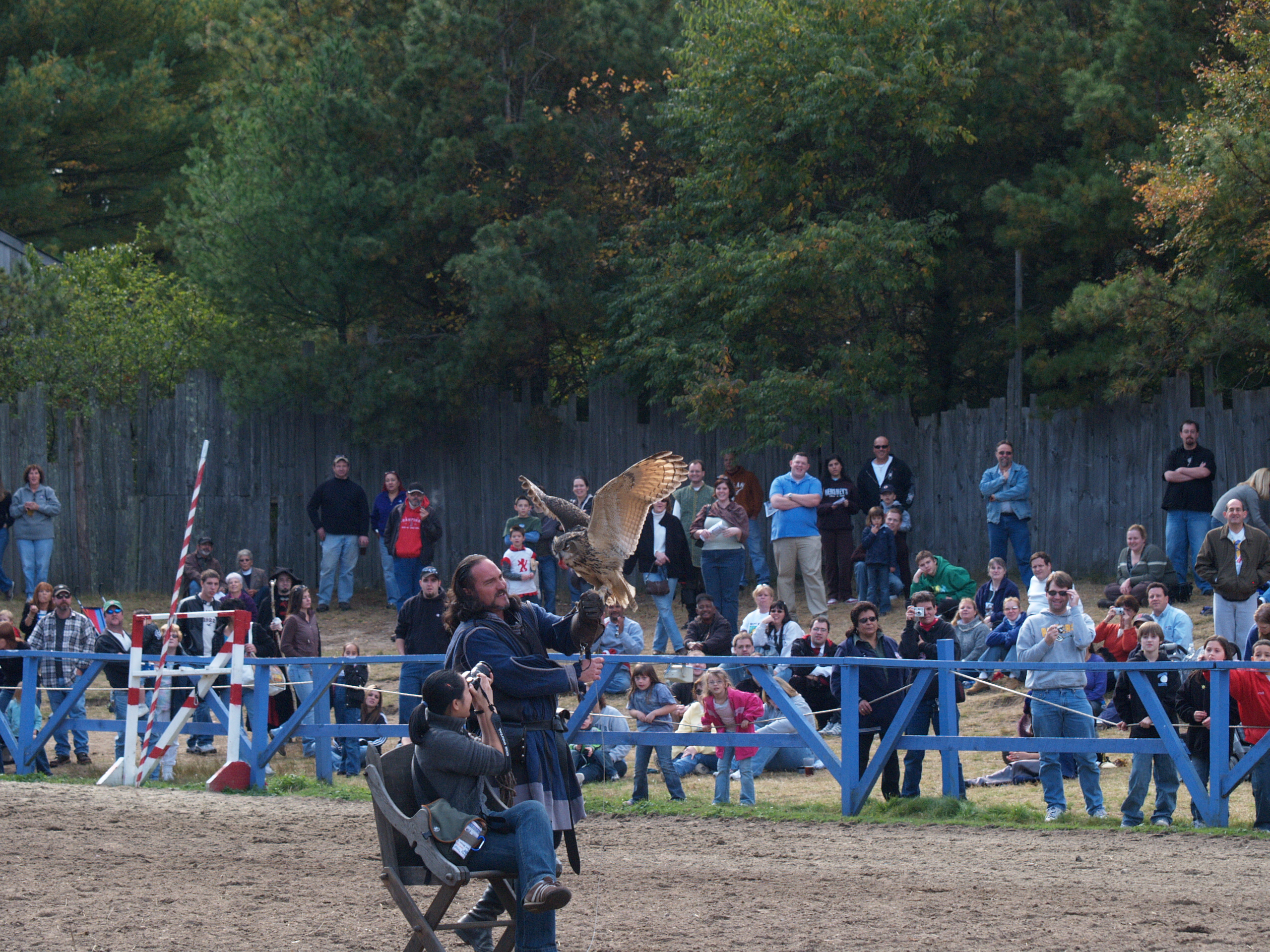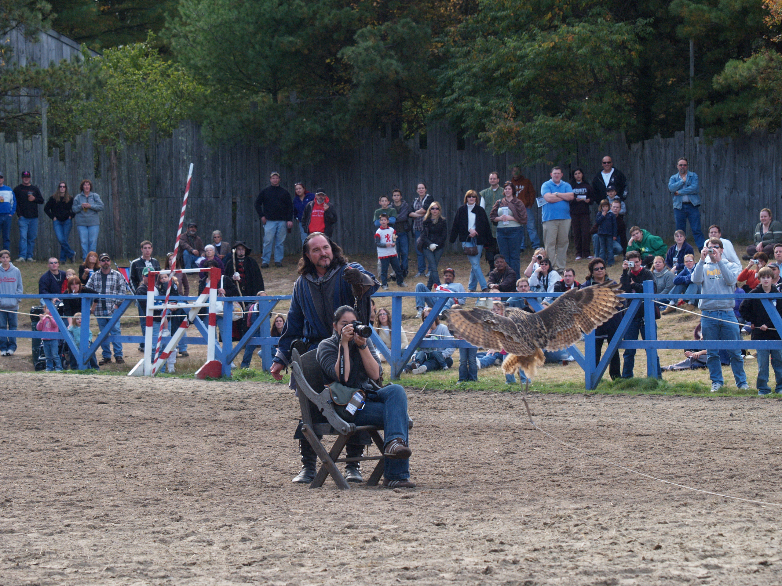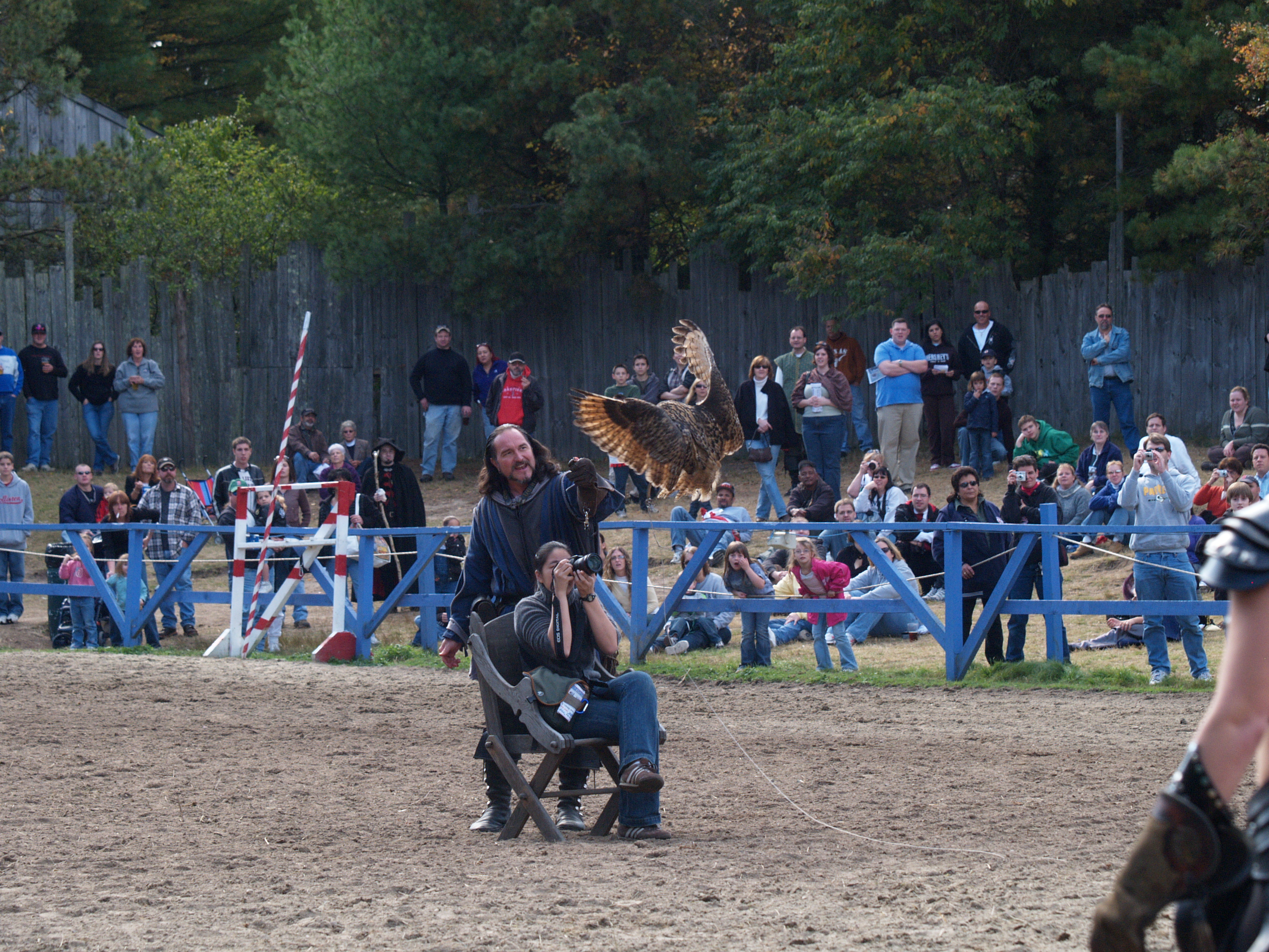 Picture #4: Knighthawk falcon show #4 Thumb: 320x240, 23,533 bytes (23K) Small: 640x503, 51,893 bytes (51K), (html file) Large: 2560x1920, 3,655,548 bytes (3.5M), (html file) Copyright, Michael Meissner 2006, All rights reserved Olympus E-1 camera with Olympus 50-200mm f/2.8-3.5 lens f/4.0, ISO 200, 1/250 sec, 169.0mm, auto mode, SHQ, matrix metering, +2 sharpening 35mm equivalent focal length 339.0mm Taken by Michael Meissner on October 14, 2006 13:39:05 Last modified on October 14, 2006 at 21:53 |