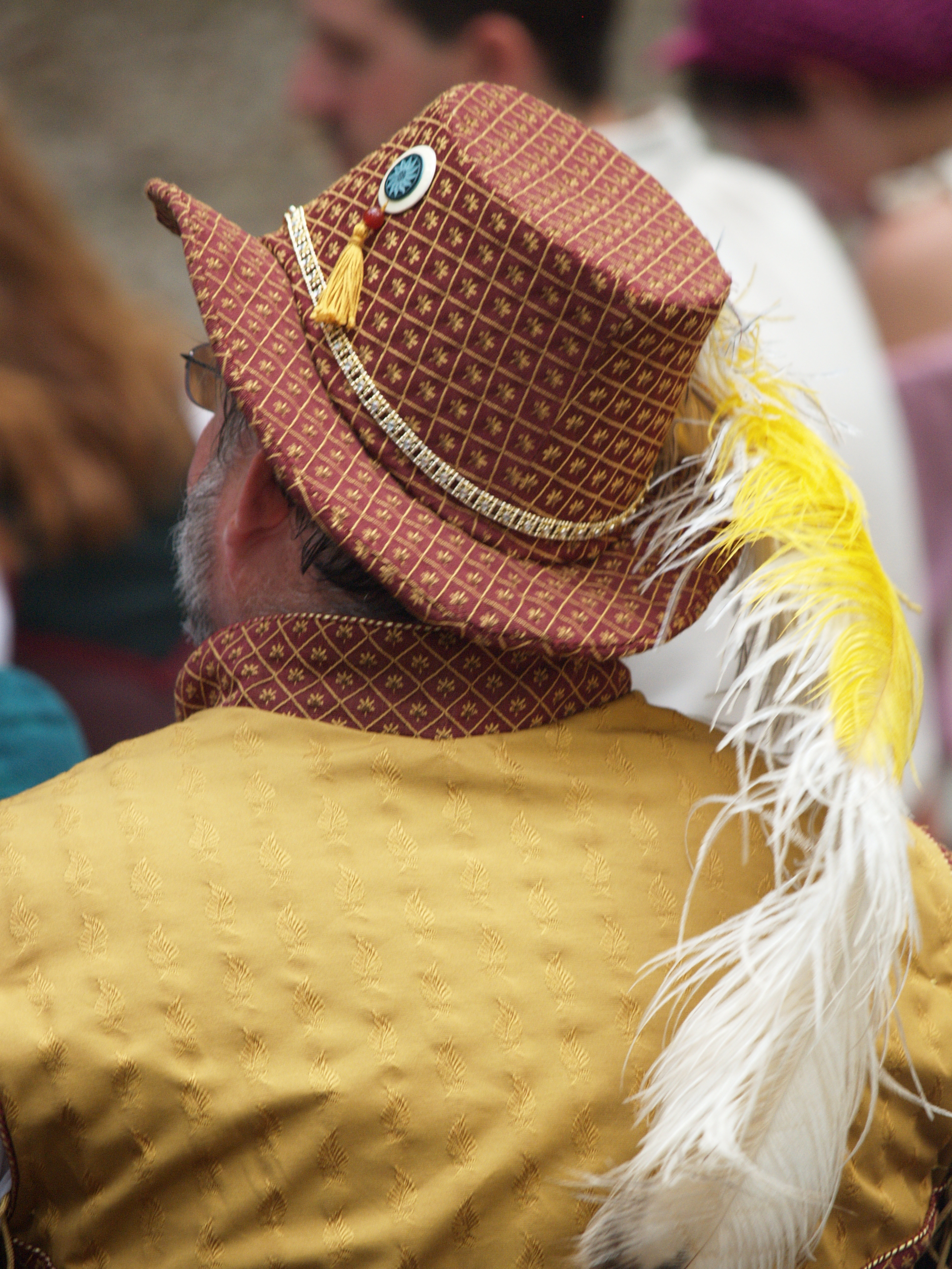 Picture #220: Hat with feathers Small: 480x686, 70,881 bytes (70K), (html file) Large: 1920x2560, 3,992,812 bytes (3.8M), (html file) Copyright, Michael Meissner 2006, All rights reserved Olympus E-1 camera with Olympus 50-200mm f/2.8-3.5 lens f/3.3, ISO 400, 1/125 sec, 169.0mm, auto mode, SHQ, matrix metering, +2 sharpening 35mm equivalent focal length 339.0mm Taken by Michael Meissner on August 26, 2006 11:27:52 Last modified on August 26, 2006 at 20:42 |