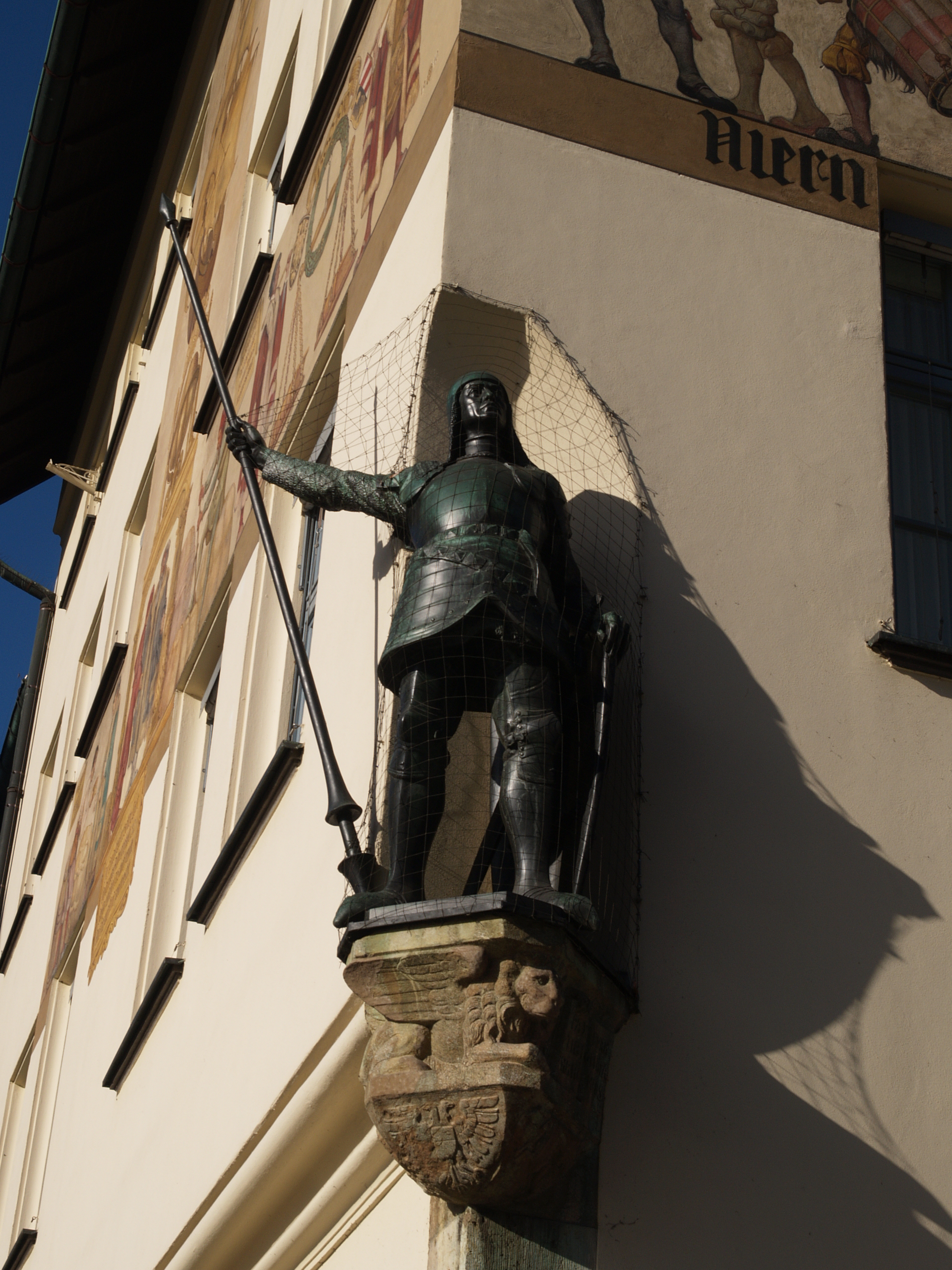 Picture #42: Knight statue #2 Small: 480x686, 65,816 bytes (65K), (html file) Large: 1920x2560, 3,994,567 bytes (3.8M), (html file) Copyright, Michael Meissner 2006, All rights reserved Olympus E-1 camera with Olympus 14-54mm f/2.8-3.5 lens f/8.0, ISO 100, 1/500 sec, 33.0mm, auto mode, SHQ, matrix metering, +2 sharpening, continous focus 35mm equivalent focal length 66.0mm Taken by Michael Meissner on November 10, 2006 11:04:29 Last modified on November 14, 2006 at 06:38 |