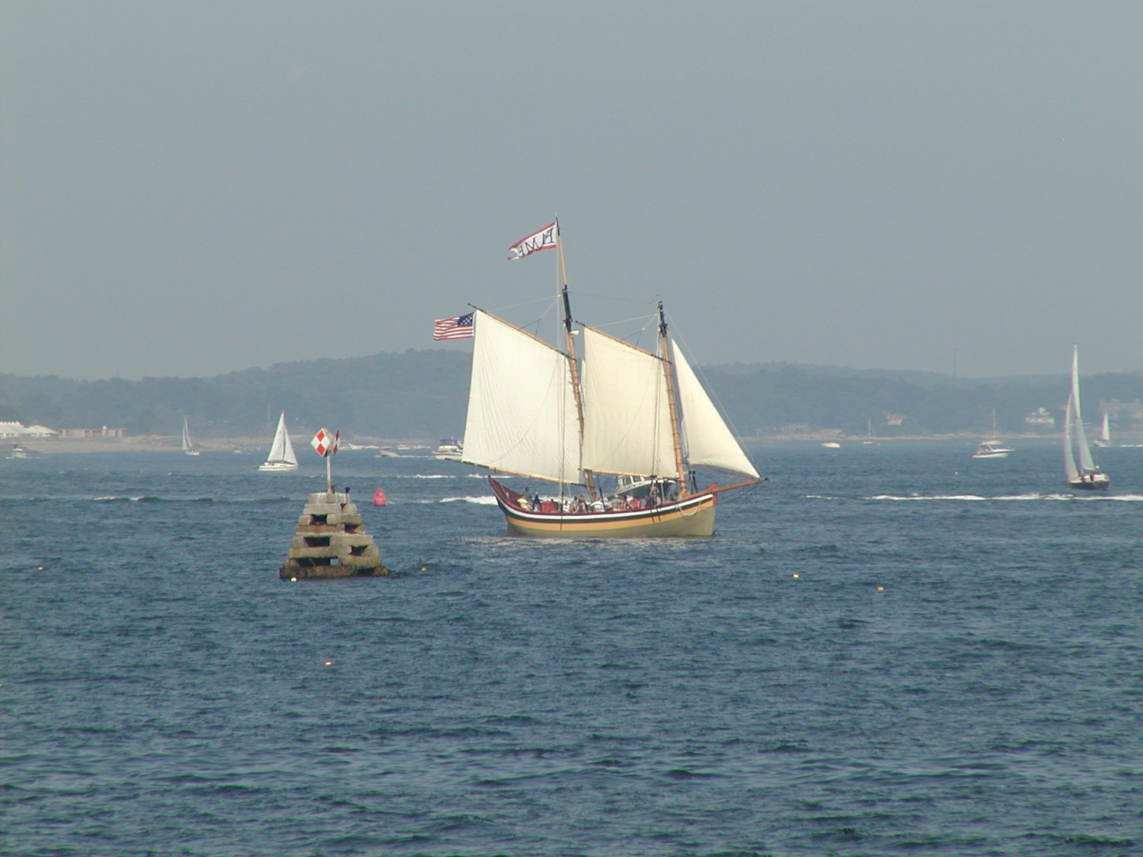 Picture #55: Sailing ship Small: 800x623, 77,661 bytes (76K), (html file) Large: 1600x1200, 1,112,134 bytes (1.1M), (html file) Copyright, Michael Meissner 2006, All rights reserved Olympus C-2100UZ camera f/7.0, ISO 100, 1/650 sec, 70.0mm, auto mode, SHQ, cloudy, matrix metering 35mm equivalent focal length 388.0mm Taken by Michael Meissner on September 17, 2006 13:18:22 Last modified on December 26, 2006 at 23:21 |