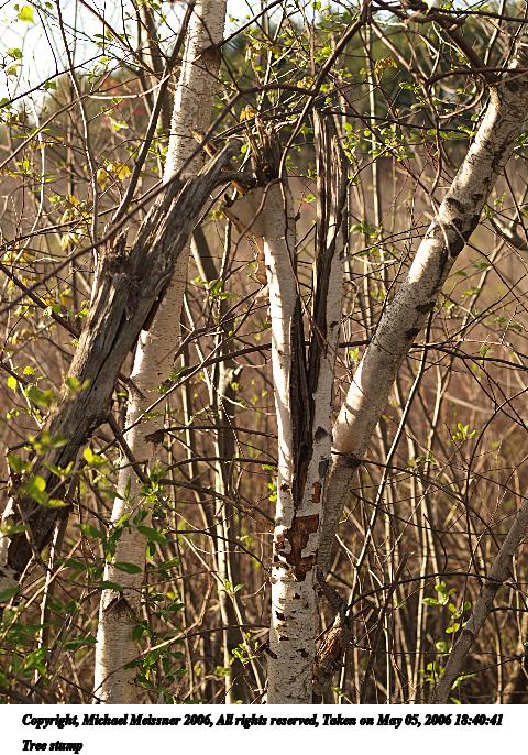 Picture #104: Tree stump #3 480x686, 135,518 bytes (133K), (html file) Copyright, Michael Meissner 2006, All rights reserved Olympus E-1 camera with Olympus 50mm f/2.0 lens f/3.5, ISO 100, 1/320 sec, 50.0mm, auto mode, SHQ, spot metering, +2 sharpening 35mm equivalent focal length 100.0mm Taken by Michael Meissner on May 05, 2006 18:40:41 Last modified on May 06, 2006 at 09:34 |