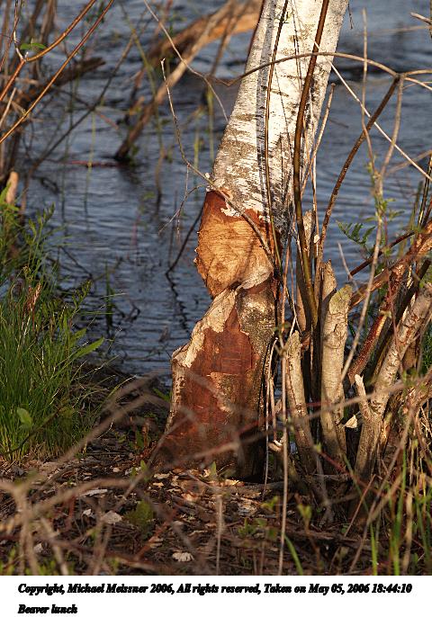 Picture #103: Beaver lunch 480x686, 102,288 bytes (100K), (html file) Copyright, Michael Meissner 2006, All rights reserved Olympus E-1 camera with Olympus 50-200mm f/2.8-3.5 lens and Olympus EC-14 (1.4x) f/5.0, ISO 200, 1/320 sec, 136.0mm, auto mode, SHQ, matrix metering, +2 sharpening 35mm equivalent focal length 272.0mm, EC-14 Taken by Michael Meissner on May 05, 2006 18:44:10 Last modified on May 06, 2006 at 09:34 |
