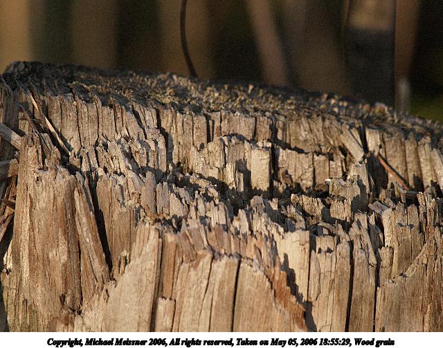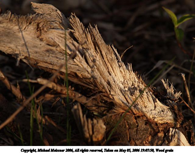 Picture #94: Wood grain 640x503, 94,842 bytes (93K), (html file) Copyright, Michael Meissner 2006, All rights reserved Olympus E-1 camera with Olympus 50-200mm f/2.8-3.5 lens and Olympus EC-14 (1.4x) f/8.0, ISO 400, 1/500 sec, 283.0mm, auto mode, SHQ, spot metering, +2 sharpening 35mm equivalent focal length 567.0mm, EC-14 Taken by Michael Meissner on May 05, 2006 18:55:29 Last modified on May 14, 2006 at 23:11 |