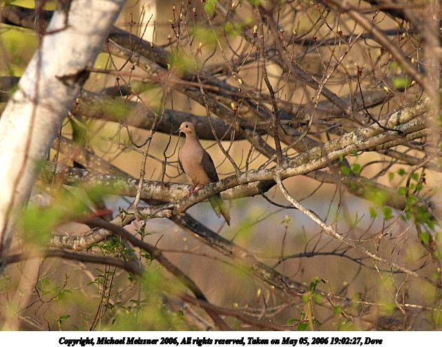 Picture #90: Dove 640x503, 83,499 bytes (82K), (html file) Copyright, Michael Meissner 2006, All rights reserved Olympus E-1 camera with Olympus 50-200mm f/2.8-3.5 lens and Olympus EC-14 (1.4x) f/6.3, ISO 400, 1/320 sec, 283.0mm, auto mode, SHQ, spot metering, +2 sharpening 35mm equivalent focal length 567.0mm, EC-14 Taken by Michael Meissner on May 05, 2006 19:02:27 Last modified on May 14, 2006 at 23:11 |