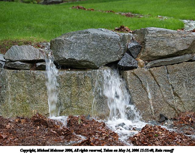 Picture #74: Rain runoff #2 640x503, 116,250 bytes (114K), (html file) Copyright, Michael Meissner 2006, All rights reserved Olympus E-1 camera with Olympus 50-200mm f/2.8-3.5 lens f/2.8, ISO 100, 1/80 sec, 62.0mm, auto mode, SHQ, matrix metering, +2 sharpening 35mm equivalent focal length 124.0mm Taken by Michael Meissner on May 14, 2006 15:55:40 Last modified on May 14, 2006 at 16:36 |
