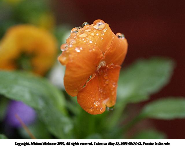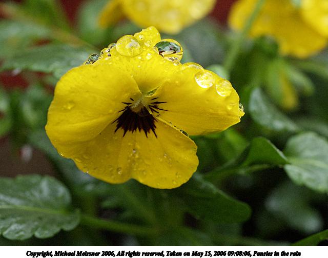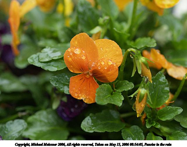 Picture #67: Pansies in the rain #4 640x503, 52,329 bytes (52K), (html file) Copyright, Michael Meissner 2006, All rights reserved Olympus E-1 camera with Olympus 50mm f/2.0 lens f/5.6, ISO 400, 1/125 sec, 50.0mm, aperture priority, SHQ, matrix metering, +2 sharpening 35mm equivalent focal length 100.0mm Taken by Michael Meissner on May 15, 2006 09:08:06 Last modified on May 15, 2006 at 09:11 This picture is one of my favorites. |