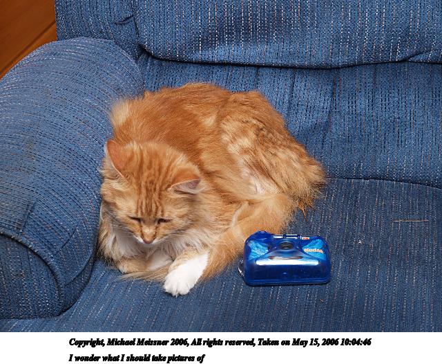 Picture #65: I wonder what I should take pictures of 640x526, 107,583 bytes (106K), (html file) Copyright, Michael Meissner 2006, All rights reserved Olympus E-1 camera with Olympus 14-54mm f/2.8-3.5 lens f/5.6, ISO 100, FL-50 flash, 1/100 sec, 50.0mm, aperture priority, SHQ, matrix metering, +2 sharpening 35mm equivalent focal length 100.0mm Extra equipment used: FL-50 flash Taken by Michael Meissner on May 15, 2006 10:04:46 Last modified on May 16, 2006 at 07:52 |