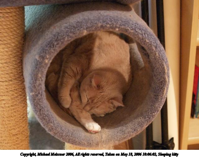 Picture #62: Sleeping kitty #2 640x503, 72,823 bytes (72K), (html file) Copyright, Michael Meissner 2006, All rights reserved Olympus E-1 camera with Olympus 50-200mm f/2.8-3.5 lens f/2.8, ISO 3200, 1/80 sec, 50.0mm, auto mode, SHQ, matrix metering, +2 sharpening 35mm equivalent focal length 100.0mm Extra equipment used: neatimage Taken by Michael Meissner on May 18, 2006 10:06:10 Last modified on May 19, 2006 at 09:51 |