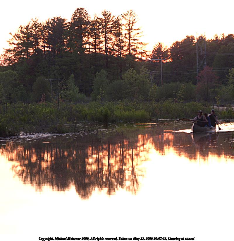 Picture #27: Sunset over Spectacle Pond #4 640x503, 49,755 bytes (49K), (html file) Copyright, Michael Meissner 2006, All rights reserved Olympus E-1 camera with Olympus 50-200mm f/2.8-3.5 lens f/7.1, ISO 100, 1/640 sec, 50.0mm, auto mode, SHQ, matrix metering, +2 sharpening 35mm equivalent focal length 100.0mm Taken by Michael Meissner on May 25, 2006 19:49:17 Last modified on May 25, 2006 at 23:40 This picture is one of my favorites. |