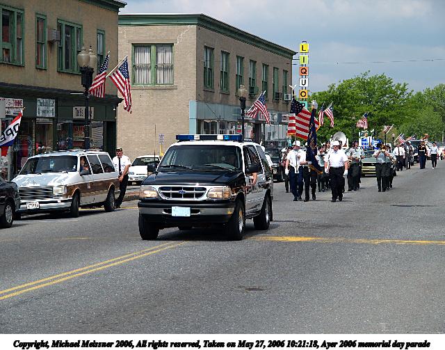 Picture #18: Ayer 2006 memorial day parade #3 640x503, 89,172 bytes (88K), (html file) Copyright, Michael Meissner 2006, All rights reserved Olympus E-1 camera with Olympus 14-54mm f/2.8-3.5 lens f/5.6, ISO 100, FL-50 flash, fp-ttl (-1 flash compensation), 1/250 sec, 38.0mm, auto mode, SHQ, center weight metering, +2 sharpening 35mm equivalent focal length 76.0mm Extra equipment used: FL-50 flash, polarizer Taken by Michael Meissner on May 27, 2006 10:21:41 Last modified on May 27, 2006 at 14:03 |