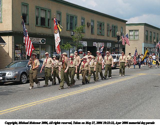 Picture #6: Ayer 2006 memorial day parade #13 640x503, 108,005 bytes (106K), (html file) Copyright, Michael Meissner 2006, All rights reserved Olympus E-1 camera with Olympus 14-54mm f/2.8-3.5 lens f/3.4, ISO 100, FL-50 flash, 1/100 sec, 47.0mm, auto mode, SHQ, matrix metering, +2 sharpening 35mm equivalent focal length 94.0mm Extra equipment used: FL-50 flash, polarizer Taken by Michael Meissner on May 27, 2006 10:48:05 Last modified on May 27, 2006 at 14:04 |