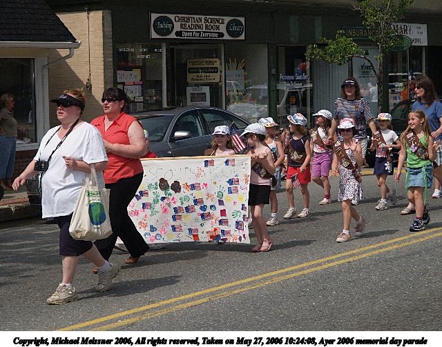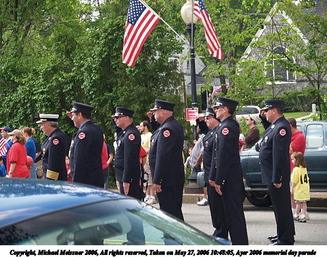 Picture #9: Ayer 2006 memorial day parade #11 640x503, 86,627 bytes (85K), (html file) Copyright, Michael Meissner 2006, All rights reserved Olympus E-1 camera with Olympus 14-54mm f/2.8-3.5 lens f/4.5, ISO 100, FL-50 flash, fp-ttl (-1 flash compensation), 1/160 sec, 38.0mm, auto mode, SHQ, center weight metering, +2 sharpening 35mm equivalent focal length 76.0mm Extra equipment used: FL-50 flash, polarizer Taken by Michael Meissner on May 27, 2006 10:26:05 Last modified on May 27, 2006 at 14:03 |