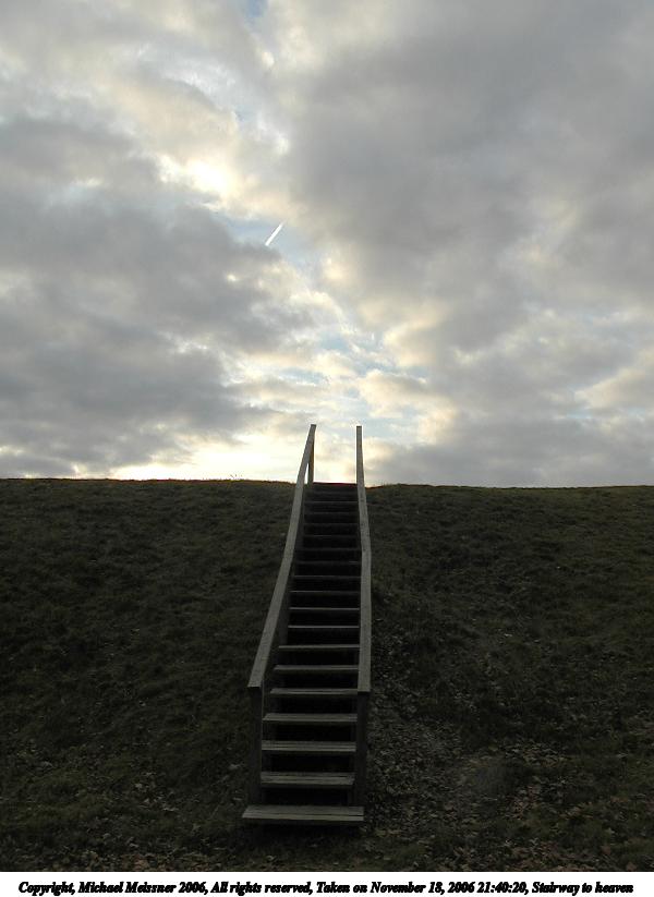 Picture #3: Stairway to heaven 600x823, 56,068 bytes (55K), (html file) Copyright, Michael Meissner 2006, All rights reserved Olympus C-2100UZ camera f/4.5, ISO 100, 1/500 sec, 7.0mm, auto mode, SHQ, cloudy, matrix metering 35mm equivalent focal length 39.0mm Taken by Michael Meissner on November 18, 2006 21:40:20 Last modified on November 19, 2006 at 09:40 |
