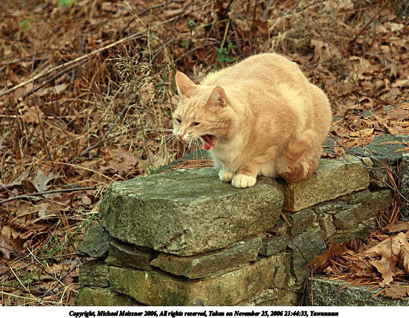 Picture #1: Yawnnnnn 800x623, 181,211 bytes (177K), (html file) Copyright, Michael Meissner 2006, All rights reserved Olympus E-1 camera with Olympus 14-54mm f/2.8-3.5 lens f/3.5, ISO 400, 1/60 sec, 54.0mm, auto mode, SHQ, matrix metering, +2 sharpening 35mm equivalent focal length 108.0mm Taken by Michael Meissner on November 25, 2006 21:44:33 Last modified on November 26, 2006 at 08:35 |