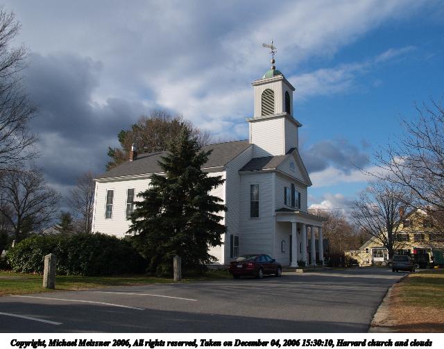 Picture #73: Harvard church and clouds 640x503, 66,099 bytes (65K), (html file) Copyright, Michael Meissner 2006, All rights reserved Olympus E-1 camera with Olympus 14-54mm f/2.8-3.5 lens f/7.1, ISO 100, 1/250 sec, 14.0mm, auto mode, SHQ, matrix metering, +2 sharpening, Exposure bracketing (shot 1) 35mm equivalent focal length 28.0mm Taken by Michael Meissner on December 04, 2006 15:30:10 Last modified on December 04, 2006 at 23:16 |