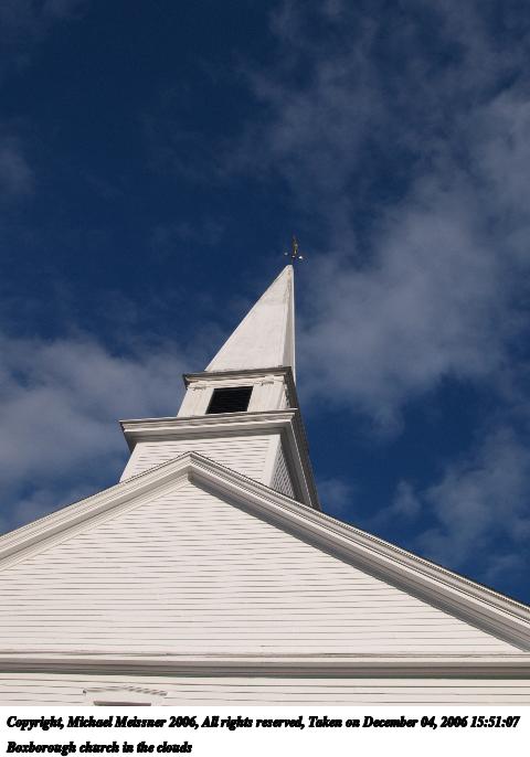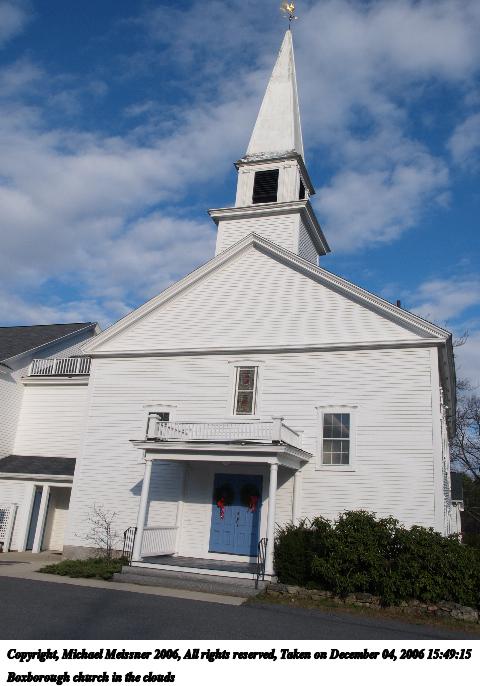 Picture #65: Boxborough church in the clouds #3 480x686, 48,111 bytes (47K), (html file) Copyright, Michael Meissner 2006, All rights reserved Olympus E-1 camera with Olympus 11-22mm f/2.8-3.5 lens f/10.0, ISO 100, 1/320 sec, 17.0mm, auto mode, SHQ, matrix metering, +2 sharpening, Exposure bracketing (shot 1) 35mm equivalent focal length 34.0mm Taken by Michael Meissner on December 04, 2006 15:51:07 Last modified on December 04, 2006 at 23:17 |