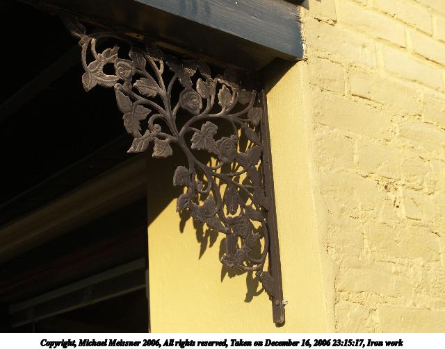 Picture #36: Iron work 640x503, 56,585 bytes (56K), (html file) Copyright, Michael Meissner 2006, All rights reserved Olympus E-1 camera with Olympus 14-54mm f/2.8-3.5 lens f/5.0, ISO 100, 1/160 sec, 31.0mm, auto mode, SHQ, matrix metering, +2 sharpening 35mm equivalent focal length 62.0mm Taken by Michael Meissner on December 16, 2006 23:15:17 Last modified on December 18, 2006 at 06:50 |