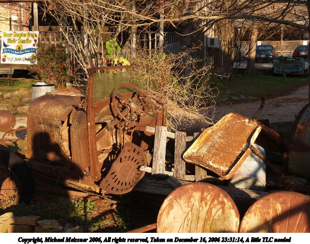 Picture #31: A little TLC needed 640x503, 111,829 bytes (110K), (html file) Copyright, Michael Meissner 2006, All rights reserved Olympus E-1 camera with Olympus 14-54mm f/2.8-3.5 lens f/5.6, ISO 100, 1/200 sec, 29.0mm, auto mode, SHQ, matrix metering, +2 sharpening 35mm equivalent focal length 58.0mm Taken by Michael Meissner on December 16, 2006 23:31:14 Last modified on December 18, 2006 at 06:50 |