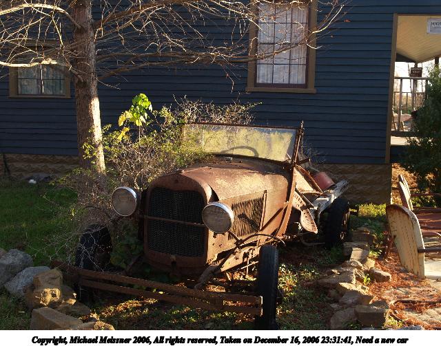 Picture #30: Need a new car 640x503, 99,956 bytes (98K), (html file) Copyright, Michael Meissner 2006, All rights reserved Olympus E-1 camera with Olympus 14-54mm f/2.8-3.5 lens f/4.5, ISO 100, 1/100 sec, 23.0mm, auto mode, SHQ, matrix metering, +2 sharpening 35mm equivalent focal length 46.0mm Taken by Michael Meissner on December 16, 2006 23:31:41 Last modified on December 18, 2006 at 06:50 |