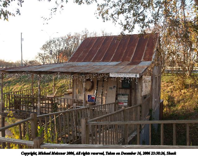 Picture #28: Shack 640x503, 109,841 bytes (108K), (html file) Copyright, Michael Meissner 2006, All rights reserved Olympus E-1 camera with Olympus 14-54mm f/2.8-3.5 lens f/5.6, ISO 200, 1/160 sec, 19.0mm, auto mode, SHQ, matrix metering, +2 sharpening 35mm equivalent focal length 38.0mm Taken by Michael Meissner on December 16, 2006 23:38:26 Last modified on December 18, 2006 at 06:50 |