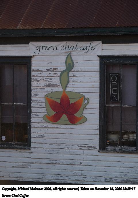 Picture #27: Green Chai Coffee 480x686, 61,722 bytes (61K), (html file) Copyright, Michael Meissner 2006, All rights reserved Olympus E-1 camera with Olympus 50-200mm f/2.8-3.5 lens f/4.0, ISO 200, 1/400 sec, 88.0mm, auto mode, SHQ, matrix metering, +2 sharpening 35mm equivalent focal length 176.0mm Taken by Michael Meissner on December 16, 2006 23:39:17 Last modified on December 18, 2006 at 06:50 |