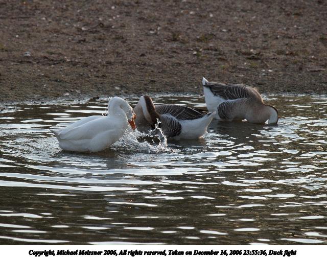 Picture #20: Duck fight 640x503, 84,360 bytes (83K), (html file) Copyright, Michael Meissner 2006, All rights reserved Olympus E-1 camera with Olympus 50-200mm f/2.8-3.5 lens f/5.0, ISO 400, 1/400 sec, 200.0mm, auto mode, SHQ, matrix metering, +2 sharpening 35mm equivalent focal length 401.0mm Taken by Michael Meissner on December 16, 2006 23:55:35 Last modified on December 18, 2006 at 06:50 |