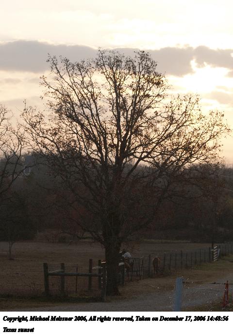 Picture #4: Texas sunset 480x686, 74,604 bytes (73K), (html file) Copyright, Michael Meissner 2006, All rights reserved Olympus E-1 camera with Olympus 50-200mm f/2.8-3.5 lens f/5.0, ISO 100, 1/400 sec, 62.0mm, auto mode, SHQ, matrix metering, +2 sharpening, Exposure bracketing (shot 1) 35mm equivalent focal length 124.0mm Taken by Michael Meissner on December 17, 2006 14:48:56 Last modified on December 18, 2006 at 06:51 |