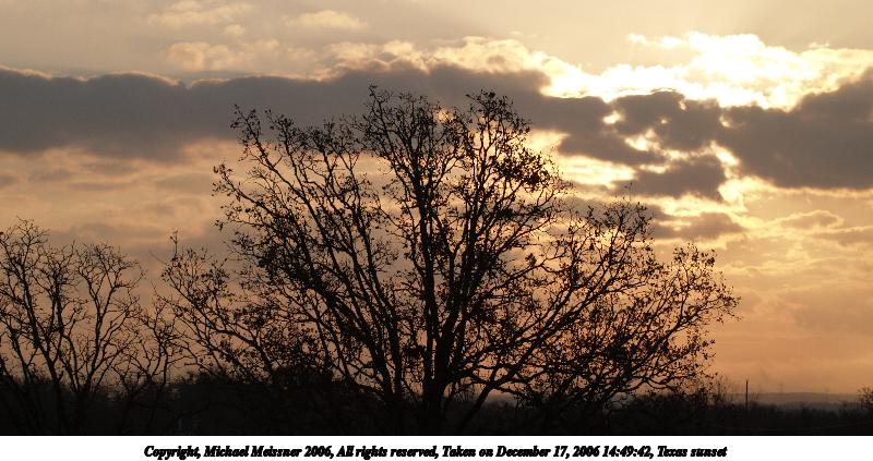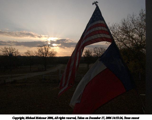 Picture #3: Texas sunset #2 800x423, 89,068 bytes (87K), (html file) Copyright, Michael Meissner 2006, All rights reserved Olympus E-1 camera with Olympus 50-200mm f/2.8-3.5 lens f/7.1, ISO 100, 1/640 sec, 56.0mm, auto mode, SHQ, center weight metering, bias -1.3, +2 sharpening, Exposure bracketing (shot 2) 35mm equivalent focal length 112.0mm Taken by Michael Meissner on December 17, 2006 14:49:42 Last modified on December 18, 2006 at 06:51 |