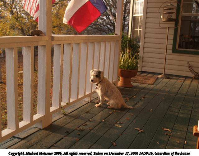 Picture #1: Guardian of the house 640x503, 69,343 bytes (68K), (html file) Copyright, Michael Meissner 2006, All rights reserved Olympus E-1 camera with Olympus 11-22mm f/2.8-3.5 lens f/5.0, ISO 100, 1/100 sec, 22.0mm, auto mode, SHQ, matrix metering, +2 sharpening 35mm equivalent focal length 44.0mm Taken by Michael Meissner on December 17, 2006 14:59:16 Last modified on December 18, 2006 at 06:52 |