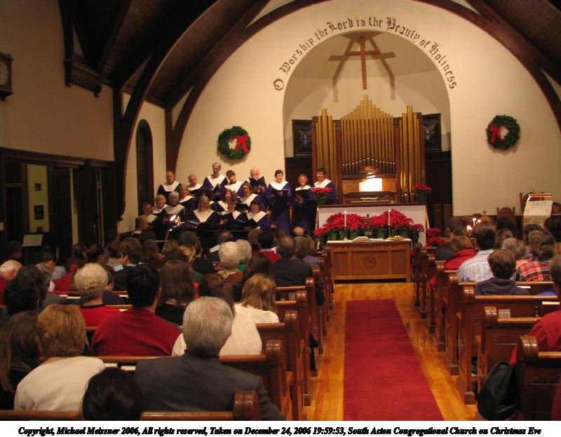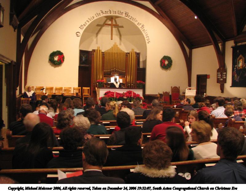 Picture #47: South Acton Congregational Church on Christmas Eve #2 800x623, 80,174 bytes (79K), (html file) Copyright, Michael Meissner 2006, All rights reserved Canon S1 camera f/2.8, ISO 100, 1/8 sec, 5.8mm, Superfine, Evaluative, image stabilization 35mm equivalent focal length 38.0mm Taken by Michael Meissner on December 24, 2006 19:59:53 Last modified on December 25, 2006 at 00:24 |