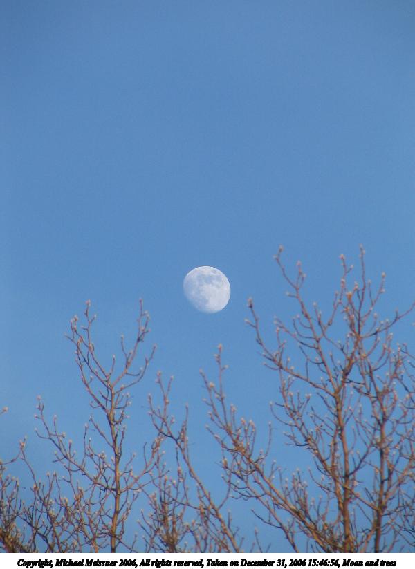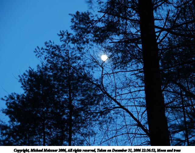 Picture #41: Moon and trees 600x823, 52,945 bytes (52K), (html file) Copyright, Michael Meissner 2006, All rights reserved Canon S1 camera f/4.5, ISO 50, 1/400 sec, 50.1mm, Superfine, Evaluative, image stabilization 35mm equivalent focal length 328.0mm Taken by Michael Meissner on December 31, 2006 15:46:56 Last modified on December 31, 2006 at 17:29 |
