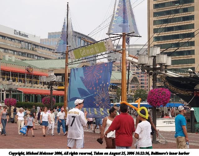 Picture #9: Baltimore's inner harbor 640x503, 103,196 bytes (101K), (html file) Copyright, Michael Meissner 2006, All rights reserved Olympus E-1 camera with Olympus 14-54mm f/2.8-3.5 lens f/5.6, ISO 100, 1/200 sec, 38.0mm, auto mode, SHQ, matrix metering, +2 sharpening 35mm equivalent focal length 76.0mm Taken by Michael Meissner on August 25, 2006 16:22:36 Last modified on September 16, 2006 at 22:23 |