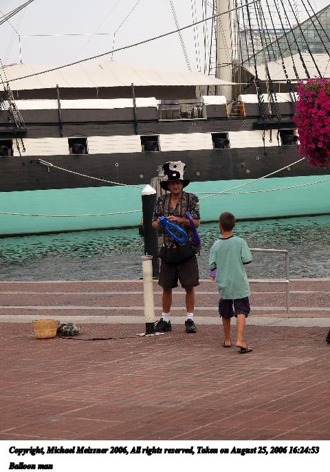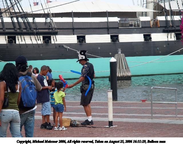 Picture #14: Balloon man #3 640x503, 85,685 bytes (84K), (html file) Copyright, Michael Meissner 2006, All rights reserved Olympus E-1 camera with Olympus 14-54mm f/2.8-3.5 lens f/4.5, ISO 100, 1/200 sec, 52.0mm, auto mode, SHQ, matrix metering, +2 sharpening 35mm equivalent focal length 104.0mm Taken by Michael Meissner on August 25, 2006 16:36:54 Last modified on September 16, 2006 at 22:23 |