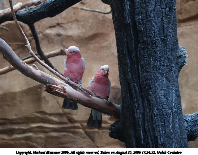 Picture #7: Galah Cockatoo #2 640x503, 69,633 bytes (69K), (html file) Copyright, Michael Meissner 2006, All rights reserved Olympus E-1 camera with Olympus 50-200mm f/2.8-3.5 lens f/2.8, ISO 400, 1/60 sec, 55.0mm, auto mode, SHQ, matrix metering, +2 sharpening 35mm equivalent focal length 110.0mm Taken by Michael Meissner on August 25, 2006 17:24:52 Last modified on August 25, 2006 at 19:16 |