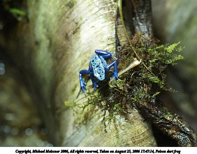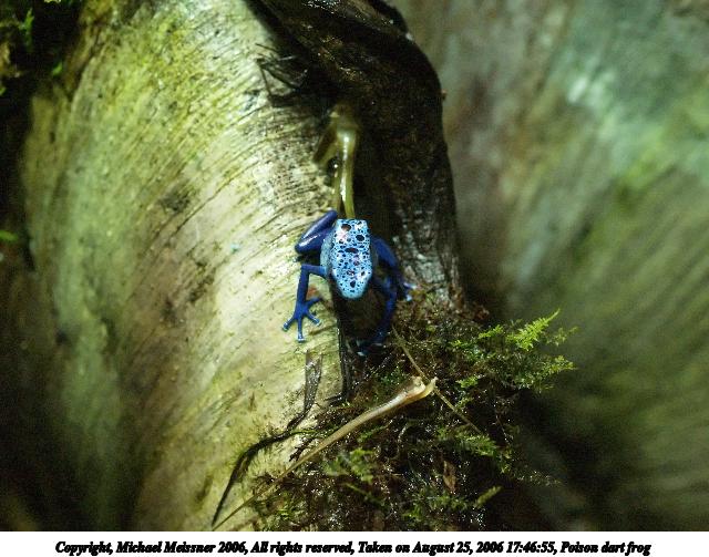 Picture #20: Poison dart frog #3 800x623, 78,138 bytes (77K), (html file) Copyright, Michael Meissner 2006, All rights reserved Olympus E-1 camera with Olympus 50mm f/2.0 lens f/2.5, ISO 800, 1/160 sec, 50.0mm, auto mode, SHQ, matrix metering, +2 sharpening 35mm equivalent focal length 100.0mm Taken by Michael Meissner on August 25, 2006 17:47:17 Last modified on August 25, 2006 at 19:18 |