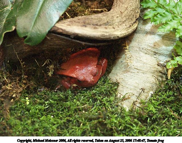 Picture #25: Tomato frog #3 800x623, 89,743 bytes (88K), (html file) Copyright, Michael Meissner 2006, All rights reserved Olympus E-1 camera with Olympus 50mm f/2.0 lens f/2.0, ISO 800, 1/80 sec, 50.0mm, auto mode, SHQ, matrix metering, +2 sharpening 35mm equivalent focal length 100.0mm Taken by Michael Meissner on August 25, 2006 17:49:16 Last modified on August 25, 2006 at 19:18 |