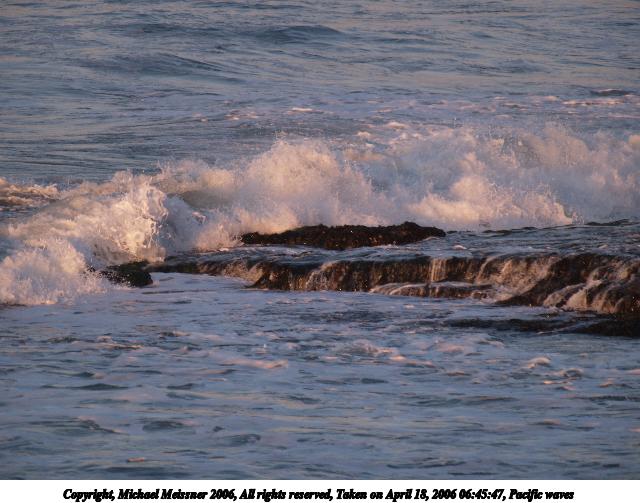 Picture #13: Pacific waves #7 640x503, 101,206 bytes (99K), (html file) Copyright, Michael Meissner 2006, All rights reserved Olympus E-1 camera with Olympus 50-200mm f/2.8-3.5 lens and Olympus EC-14 (1.4x) f/5.0, ISO 100, 1/320 sec, 70.0mm, auto mode, SHQ, matrix metering, +2 sharpening 35mm equivalent focal length 140.0mm, EC-14 Taken by Michael Meissner on April 19, 2006 15:37:42 Last modified on April 23, 2006 at 03:05 |