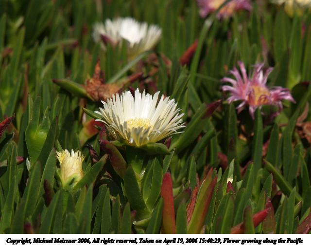 Picture #4: Flower growing along the Pacific #4 640x503, 57,006 bytes (56K), (html file) Copyright, Michael Meissner 2006, All rights reserved Olympus E-1 camera with Olympus 50-200mm f/2.8-3.5 lens and Olympus EC-14 (1.4x) f/7.1, ISO 200, 1/500 sec, 224.0mm, auto mode, SHQ, matrix metering, +2 sharpening 35mm equivalent focal length 449.0mm, EC-14 Taken by Michael Meissner on April 19, 2006 16:17:23 Last modified on April 23, 2006 at 03:06 |