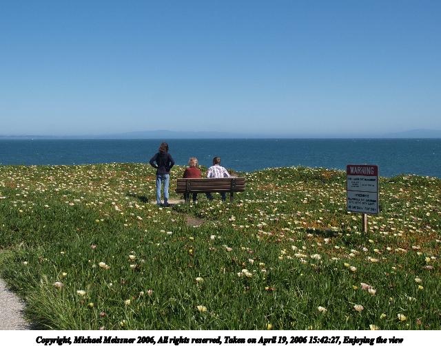 Picture #15: Enjoying the view 640x503, 82,289 bytes (81K), (html file) Copyright, Michael Meissner 2006, All rights reserved Olympus E-1 camera with Olympus 11-22mm f/2.8-3.5 lens f/8.0, ISO 100, 1/250 sec, 22.0mm, auto mode, SHQ, matrix metering, +2 sharpening 35mm equivalent focal length 44.0mm Taken by Michael Meissner on April 19, 2006 15:42:27 Last modified on April 23, 2006 at 03:05 |