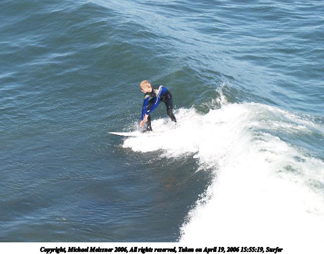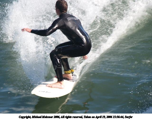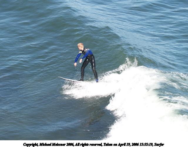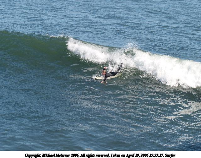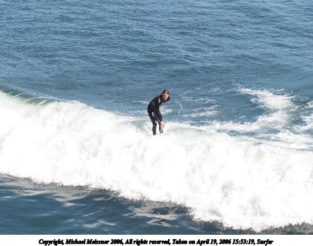 Picture #10: Surfer #10 640x503, 67,638 bytes (67K), (html file) Copyright, Michael Meissner 2006, All rights reserved Olympus E-1 camera with Olympus 50-200mm f/2.8-3.5 lens and Olympus EC-14 (1.4x) f/6.3, ISO 200, 1/400 sec, 208.0mm, auto mode, SHQ, matrix metering, +2 sharpening 35mm equivalent focal length 417.0mm, EC-14 Taken by Michael Meissner on April 19, 2006 16:01:39 Last modified on April 23, 2006 at 03:06 |